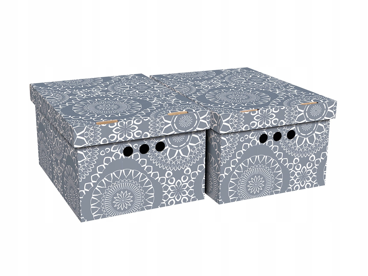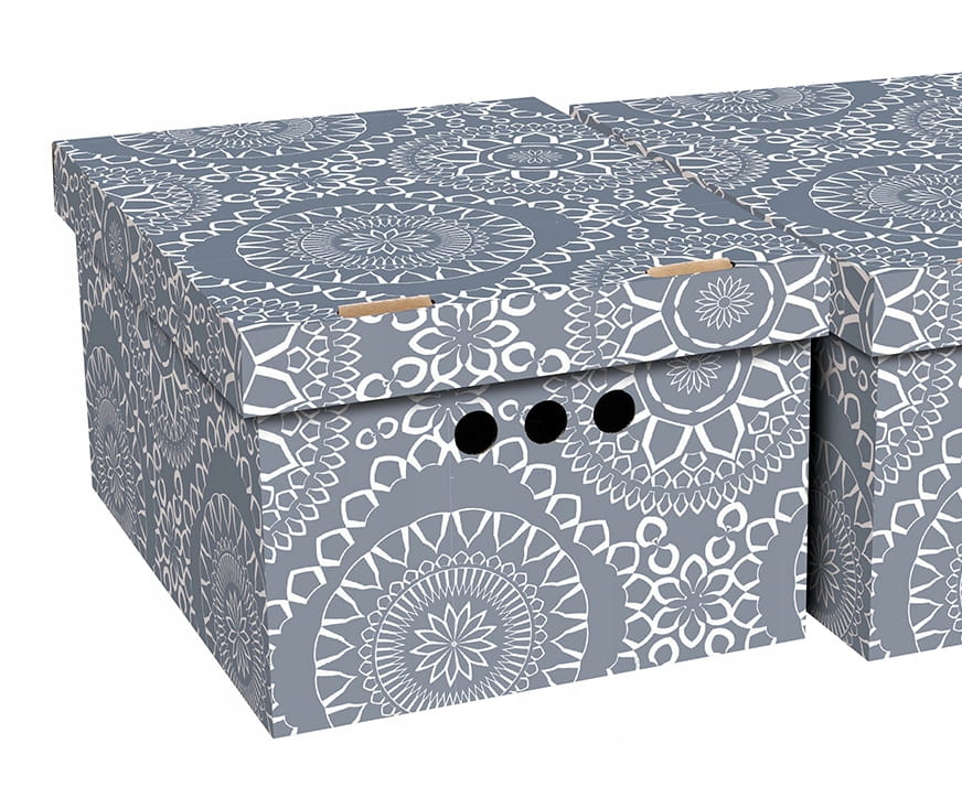 Pudełko jest wykonane z trwałego i mocnego kartonu, idealnie nadaje się do przechowywania różnych przedmiotów, takich jak ubrania, zabawki, książki i inne drobne rzeczy. Dzięki ozdobnemu nadrukowi może służyć jako dekoracja. Pudełka są bardzo łatwe w montażu i bez problemu można stawiać je na sobie.