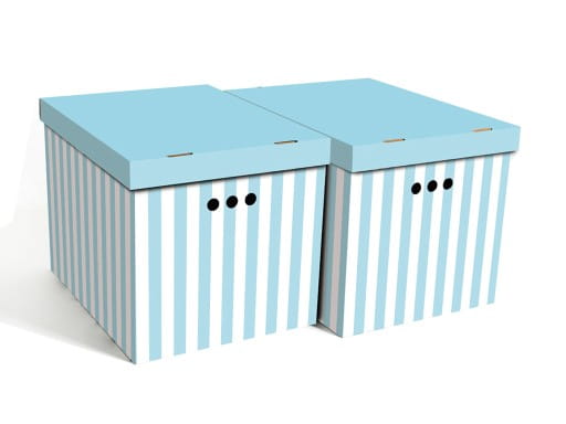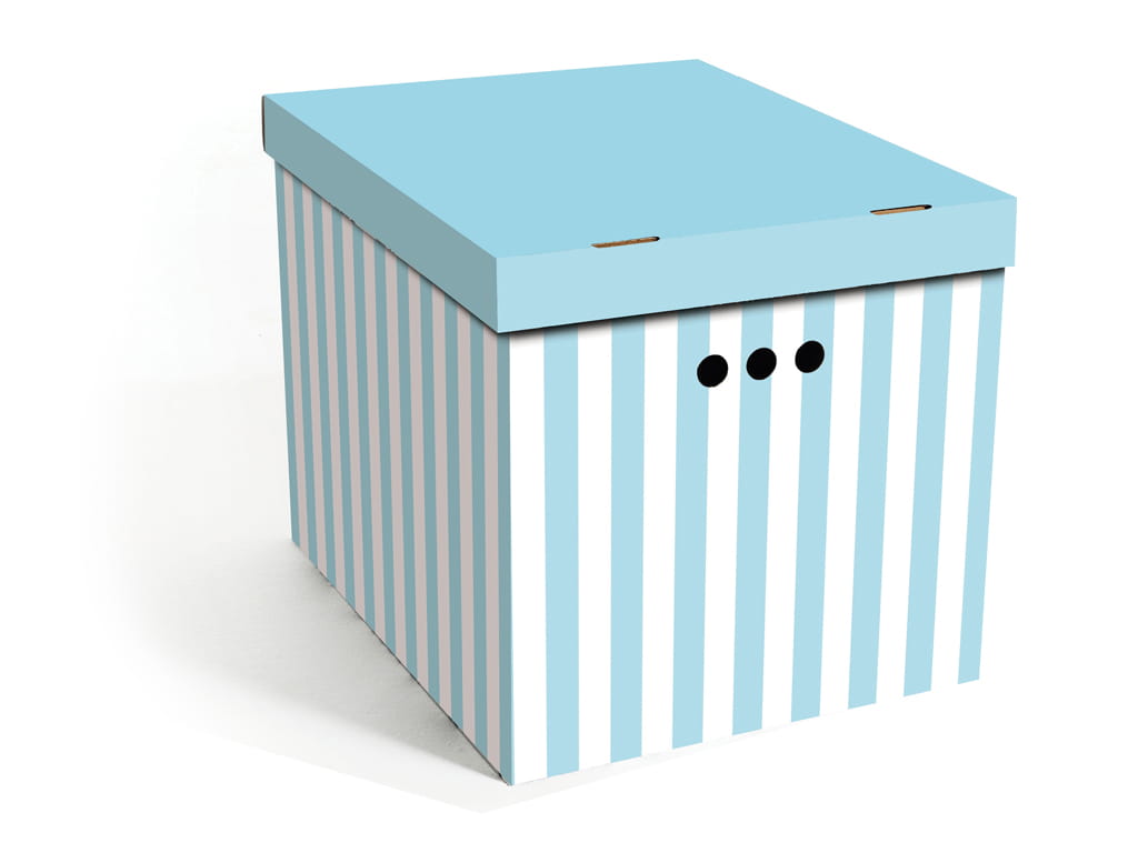 Dekoracyjne pudełko kartonowe XL, 42x32x32cm, niebieskie pasy