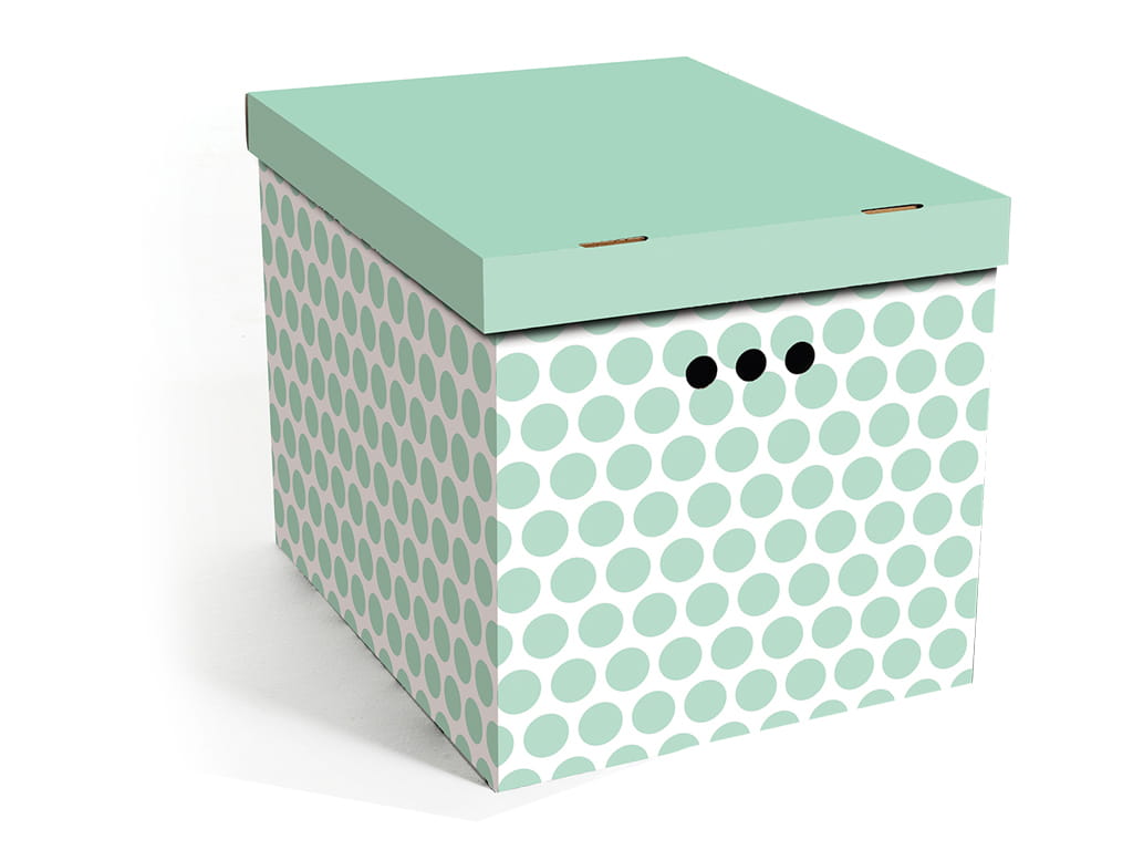 Dekoracyjne pudełko kartonowe XL, 42x32x32cm, zielone groszki