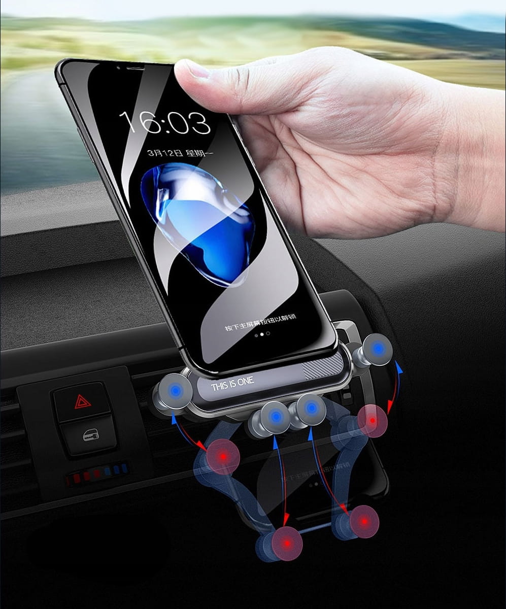 Unikatowy uchwyt wykorzystujący siłę grawitacji, który pewnie trzyma Twój telefon w każdych warunkach. Jedną ręką możesz umieścić w nim telefon i również jedną ręką go zabrać, bez żadnego problemu. Mocowanie do kratki nawiewu oszczędza miejsce w aucie. Wyjątkowy design pasuje do każdego wnętrza.