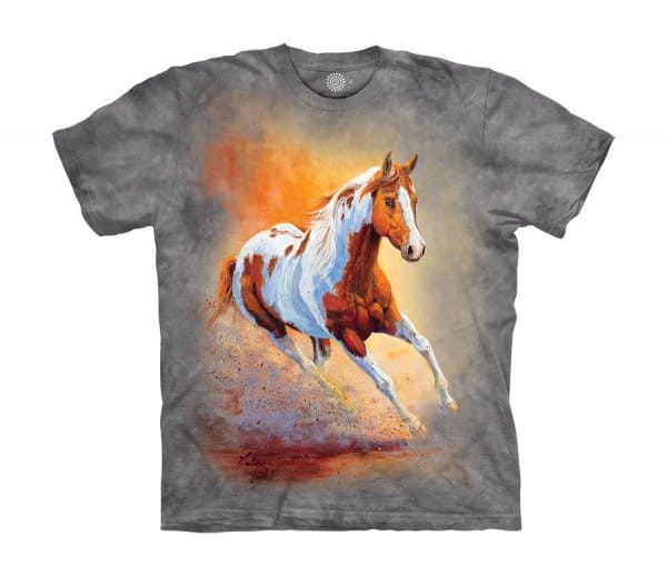 - NADRUK - metoda screen printing – podczas nadruku specjalne barwniki wtłaczane są w strukturę włókien materiału, dzięki czemu nadruk jest praktycznie niewyczuwalny, przyjemny w dotyku oraz niezwykle trwały. Bluzki The Mountain ze względu na wyjątkowo realistyczny nadruk często nazywane są koszulkami 3D. Dzięki ręcznemu barwieniu tkaniny uzyskuje się efekt tzw. marmurka, przez co tło każdej koszulki jest unikalne.