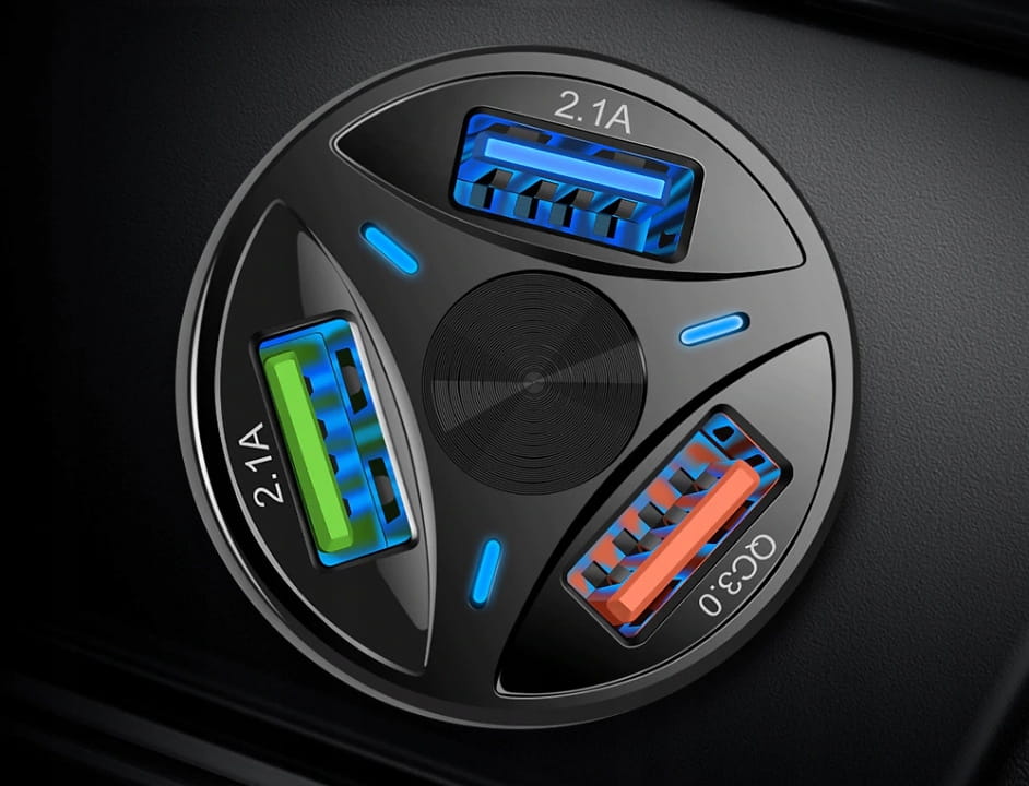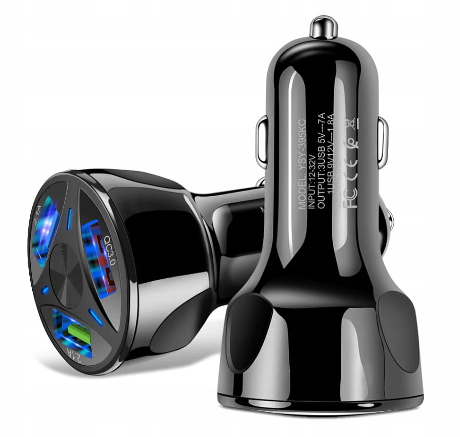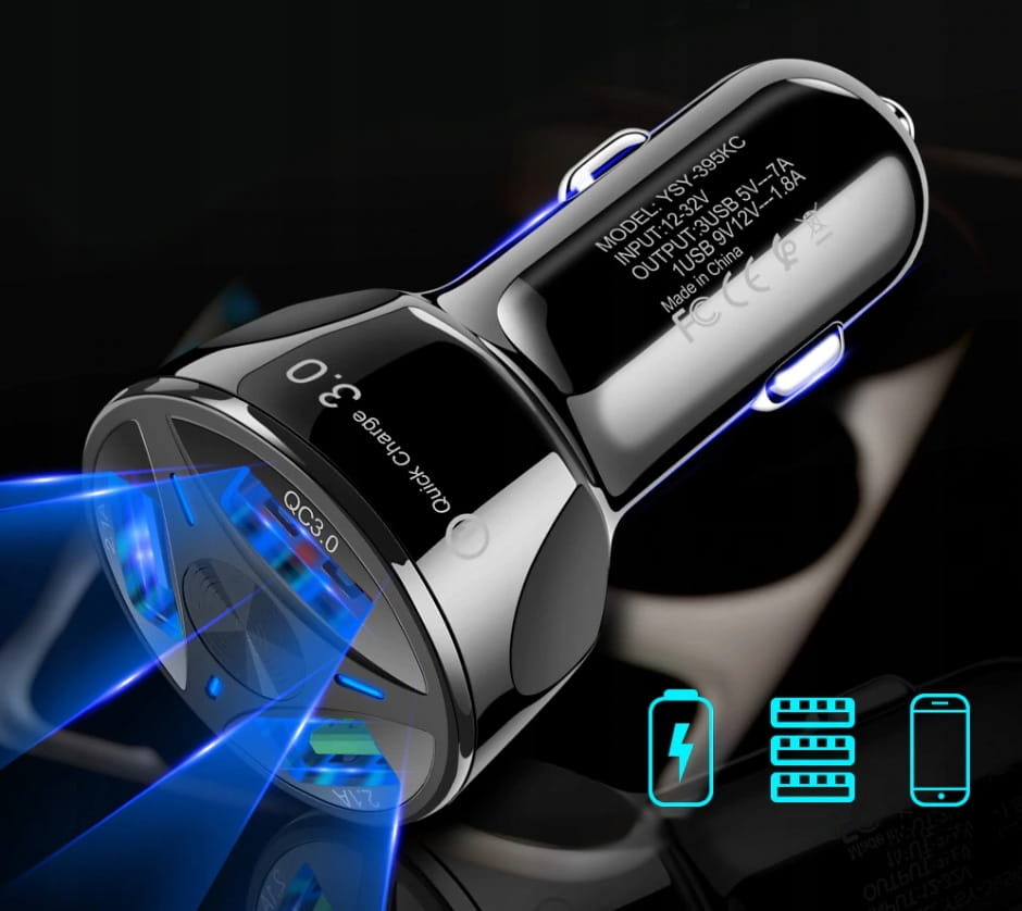 • Ładowarka samochodowa QUICK CHARGE 3.0 wyposażona w 3 szybkie porty USB - nowoczesna ładowarka dla wszystkich urządzeń wyposażonych w porty USB