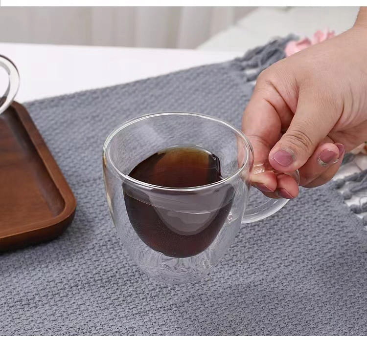* Szklanki z podwójnymi ściankami wykonane są ręcznie, ze szkła dmuchanego boro-krzemowego najwyższej jakości, które jest bardzo trwałe oraz nie traci na transparentności. Zastosowanie podwójnych ścianek powoduje, że szkło termiczne utrzymuje ciepło zdecydowanie dłużej niż zwykłe kubki i filiżanki.