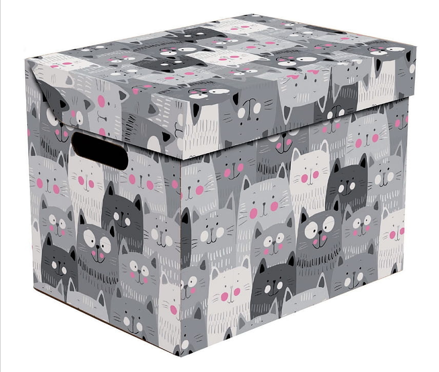 Dekoracyjne pudełko kartonowe, 34x25x26cm, kolorowe koty ONE