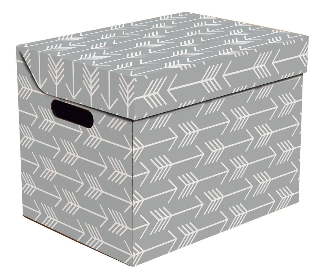 Dekoracyjne pudełko kartonowe, 34x25x26cm, szare strzały