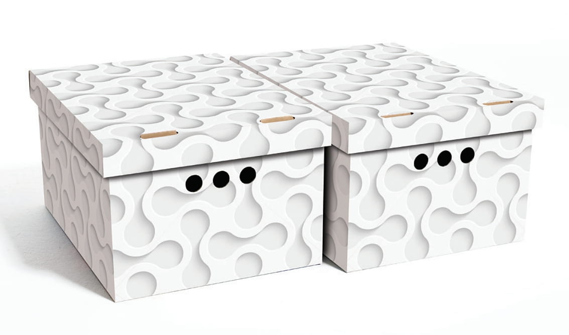 Pudełko jest wykonane z trwałego i mocnego kartonu, idealnie nadaje się do przechowywania różnych przedmiotów, takich jak ubrania, zabawki, książki i inne drobne rzeczy. Dzięki ozdobnemu nadrukowi może służyć jako dekoracja. Pudełka są bardzo łatwe w montażu i bez problemu można stawiać je na sobie.