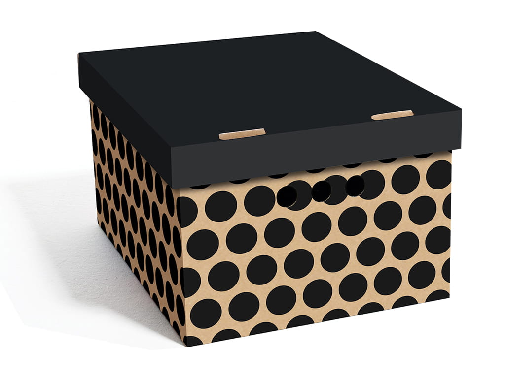 Dekoracyjne pudełko kartonowe A4, 33x25x18cm, czarne kropki