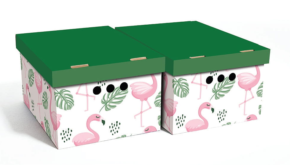 Dekoracyjne pudełko kartonowe A4, 33x25x18cm, flamingi