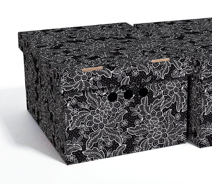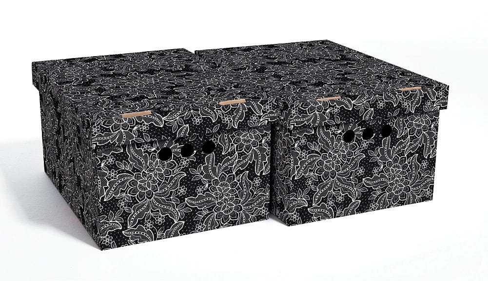 Dekoracyjne pudełko kartonowe A4, 33x25x18cm, koronka czarna