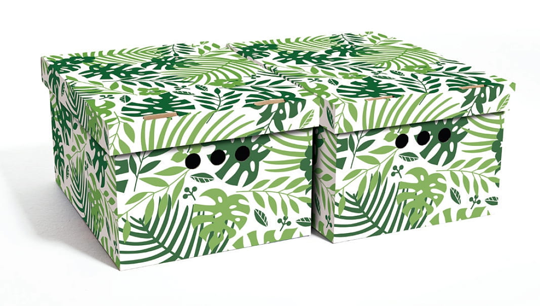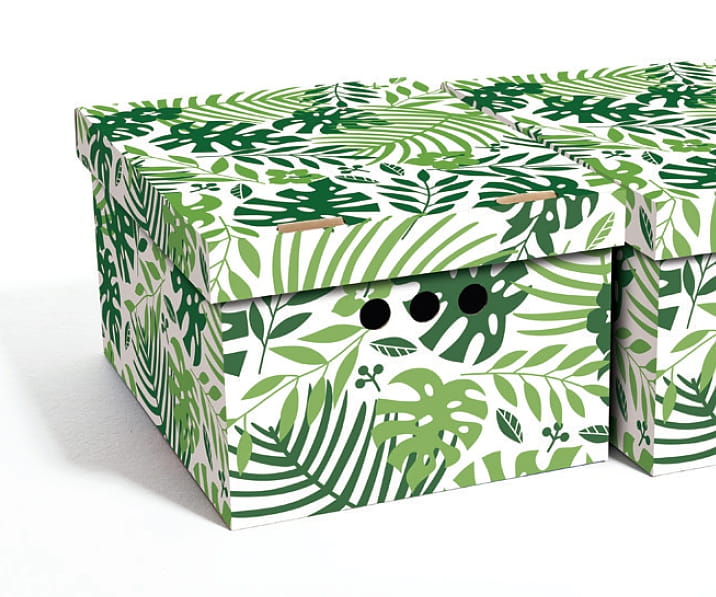 Dekoracyjne pudełko kartonowe A4, 33x25x18cm, liście tropikalne