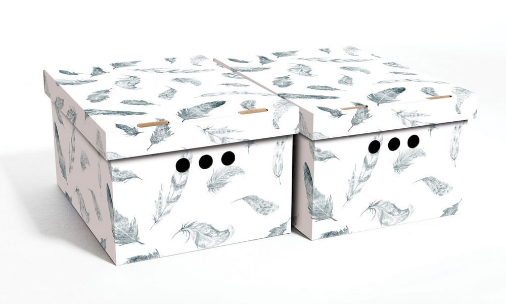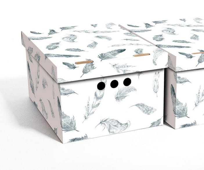 Pudełko jest wykonane z trwałego i mocnego kartonu, idealnie nadaje się do przechowywania różnych przedmiotów, takich jak ubrania, zabawki, książki i inne drobne rzeczy. Dzięki ozdobnemu nadrukowi może służyć jako dekoracja. Pudełka są bardzo łatwe w montażu i bez problemu można stawiać je na sobie.