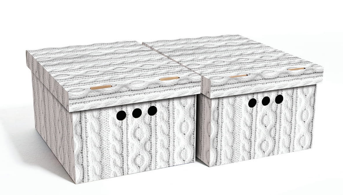 Pudełko jest wykonane z trwałego i mocnego kartonu, idealnie nadaje się do przechowywania różnych przedmiotów, takich jak ubrania, zabawki, książki i inne drobne rzeczy. Dzięki ozdobnemu nadrukowi może służyć jako dekoracja. Pudełka są bardzo łatwe w montażu i bez problemu można stawiać je na sobie.
