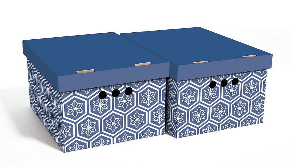 Pudełko jest wykonane z trwałego i mocnego kartonu, idealnie nadaje się do przechowywania różnych przedmiotów, takich jak ubrania, zabawki, książki i inne drobne rzeczy. Dzięki ozdobnemu nadrukowi może służyć jako dekoracja. Pudełka są bardzo łatwe w montażu i bez problemu można stawiać je na sobie.