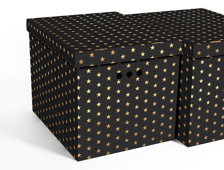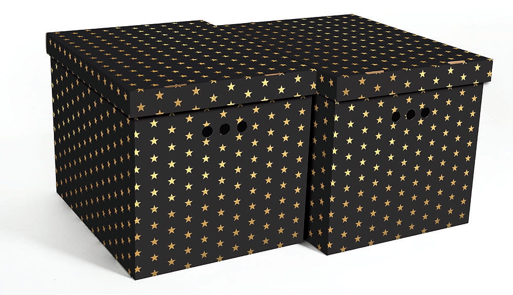 Dekoracyjne pudełko kartonowe XL, 42x32x32cm, czarno złote gwiazdy