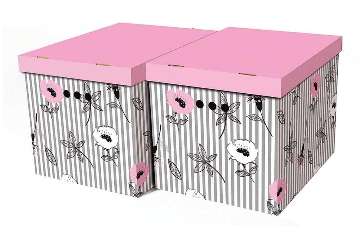 Dekoracyjne pudełko kartonowe XL, 42x32x32cm, różowe kwiaty