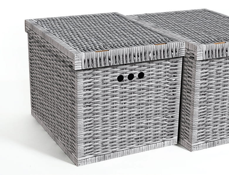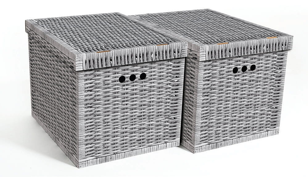 Dekoracyjne pudełko kartonowe XL, 42x32x32cm, szara wiklina, kosz wiklinowy