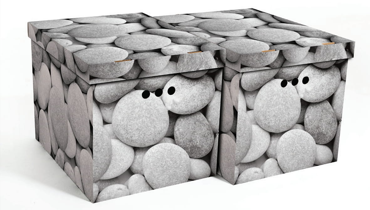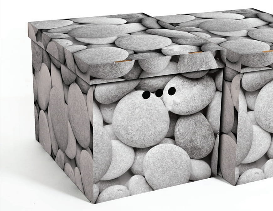 Dekoracyjne pudełko kartonowe XL, 42x32x32cm, szare kamienie