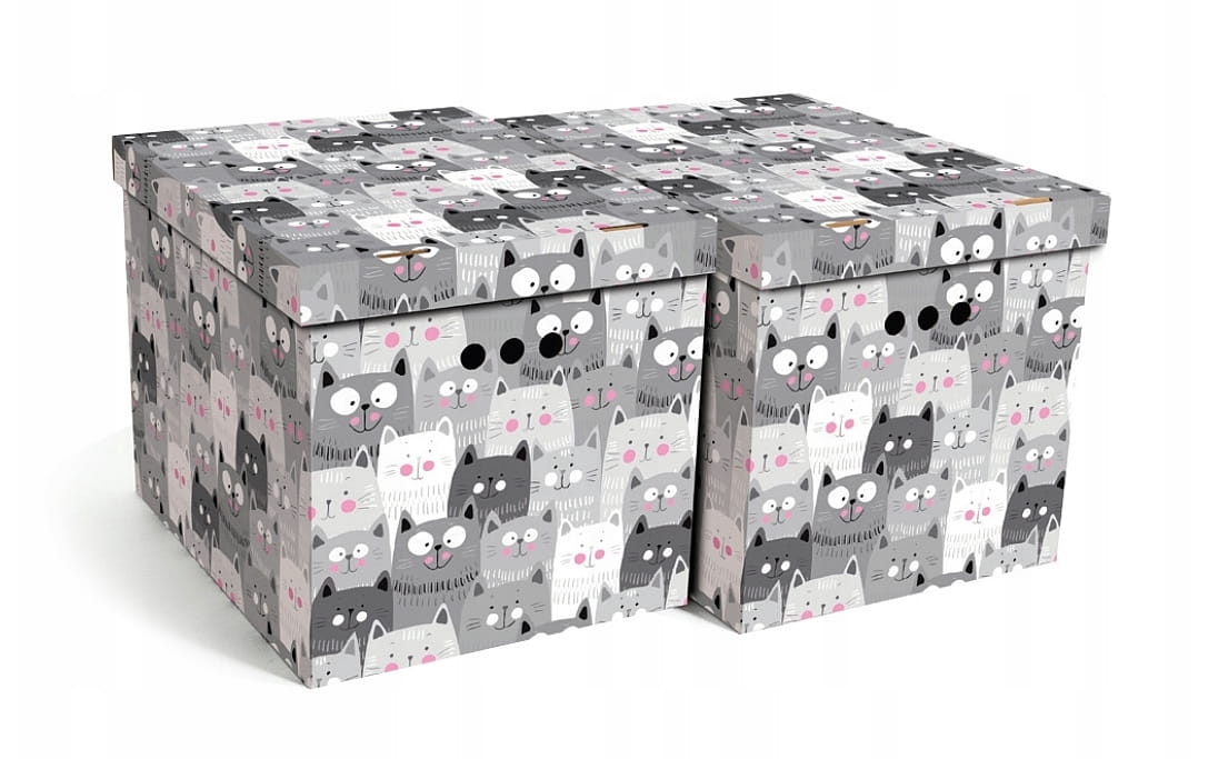 Dekoracyjne pudełko kartonowe XL, 42x32x32cm, szare kotki