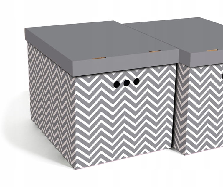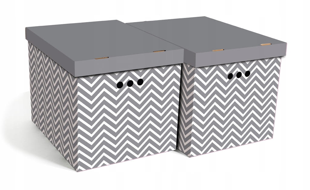 Dekoracyjne pudełko kartonowe XL, 42x32x32cm, szary zygzag