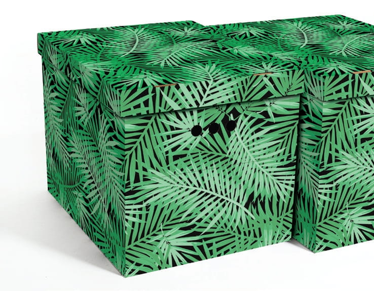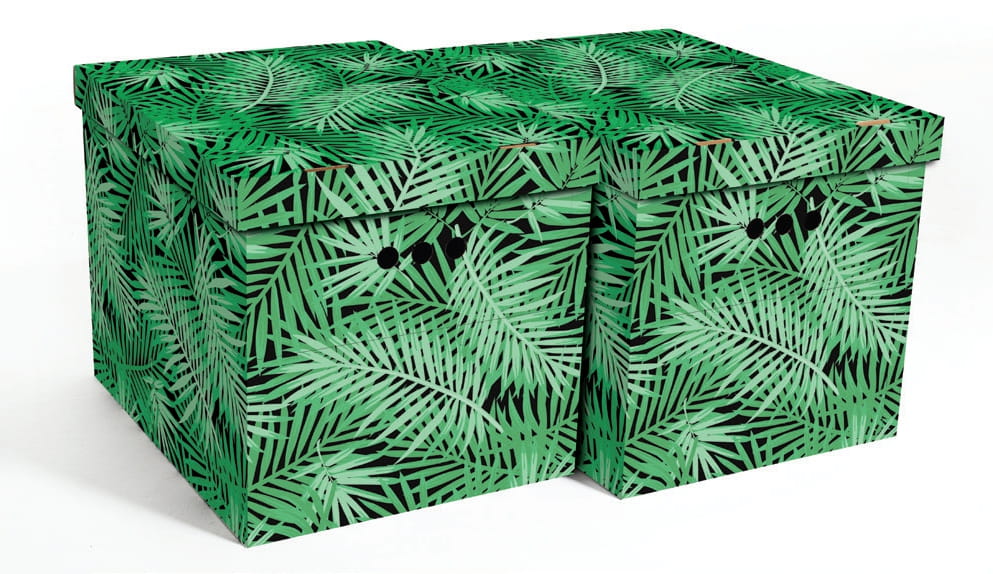 Dekoracyjne pudełko kartonowe XL, 42x32x32cm, zielone tropikalne liście