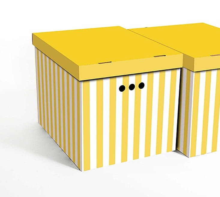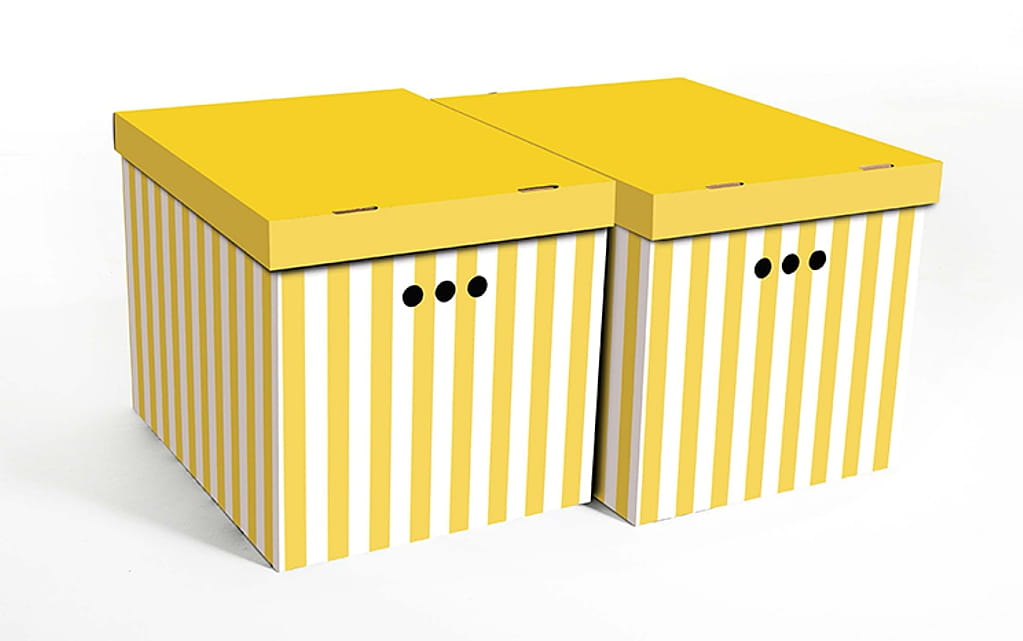Dekoracyjne pudełko kartonowe XL, 42x32x32cm, żółte pasy