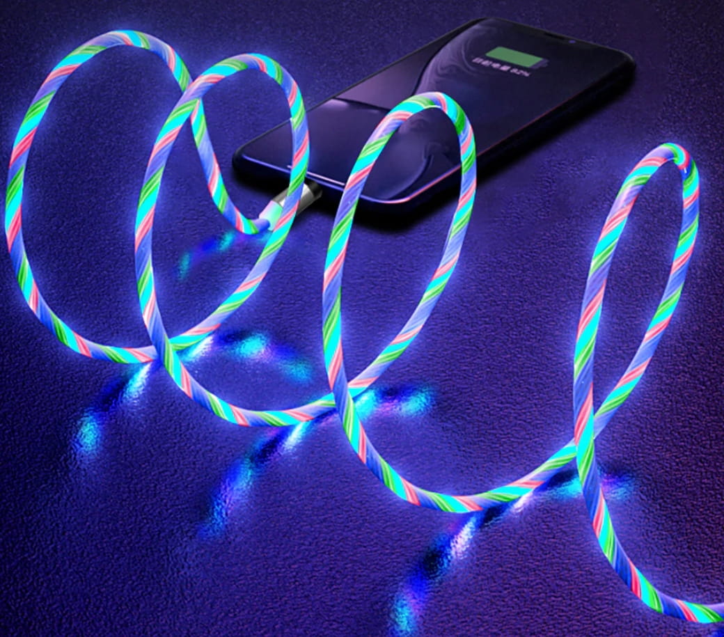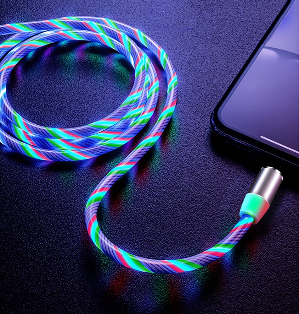 Kabel USB LED 2m - USB typ C / microUSB / Lightning