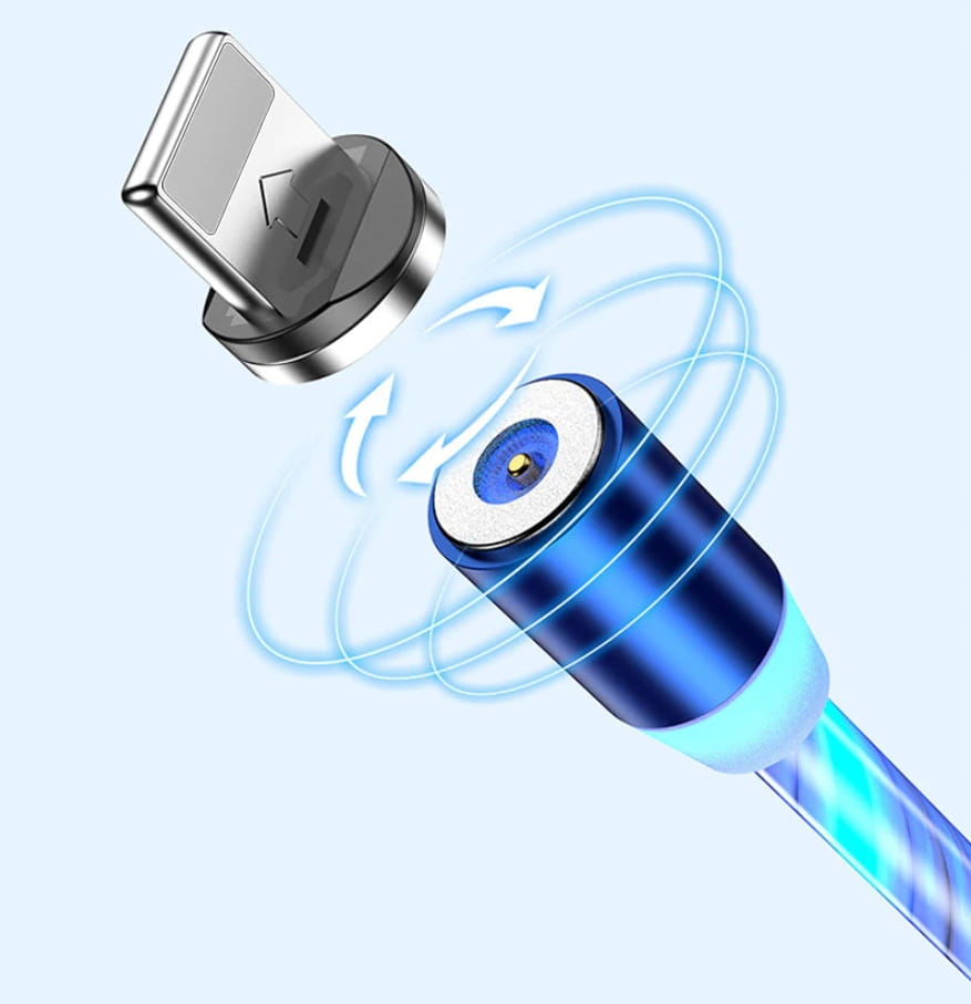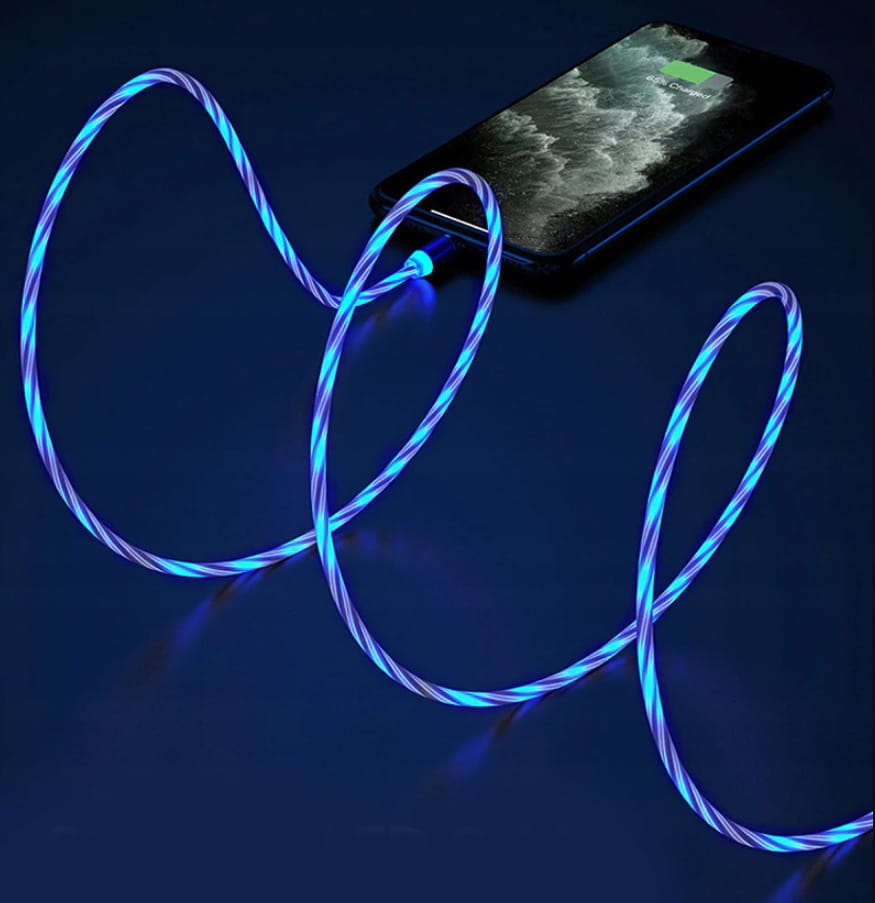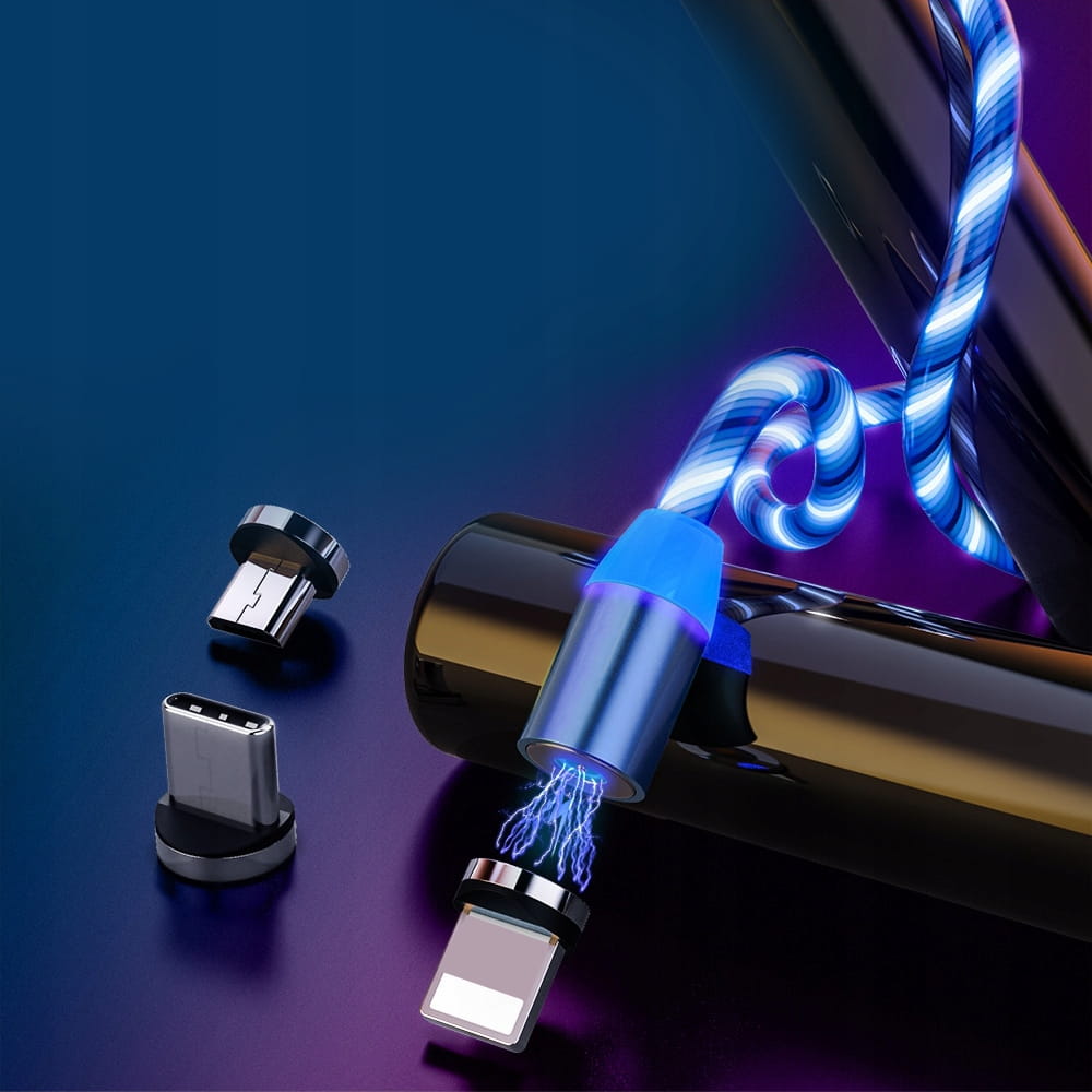 ZESTAW: MAGNETYCZNY KABEL USB LED + 3 KOŃCÓWKI