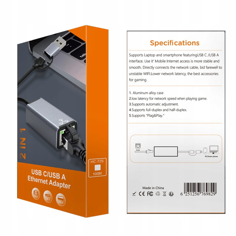 Obsługując sieć może on przesyłać dane z prędkością do 100 Mb na sekundę. Idealne rozwiązanie dla komputerów / laptopów w których brakuje karty sieciowej ze złączem RJ45 lub karta jest uszkodzona w naszym sprzęcie.