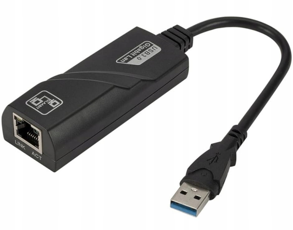 Wysokiej jakość karta sieciowa USB 3.0 (kompatybilna również z USB 2.0). Urządzenie umożliwia podłączenie do sieci komputerów/laptopów w których brakuje karty sieciowej ze złączem RJ45. Karta umożliwia przesyłanie danych z prędkością do 1000 Mbps. Urządzenie działa w systemie PLUG&PLAY - podłączasz i urządzenie samo się instaluje. Wystarczy umieścić w adapterze kabel sieciowy a następnie podłączyć do portu USB.