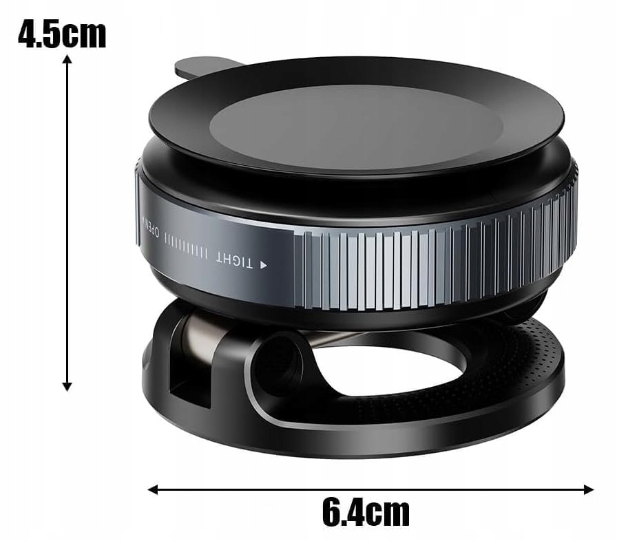 Mocna przyssawka próżniowa – zapewnia stabilne mocowanie na szybie lub innej gładkiej powierzchni, z blokadą ON/OFF dla pewnego montażu.