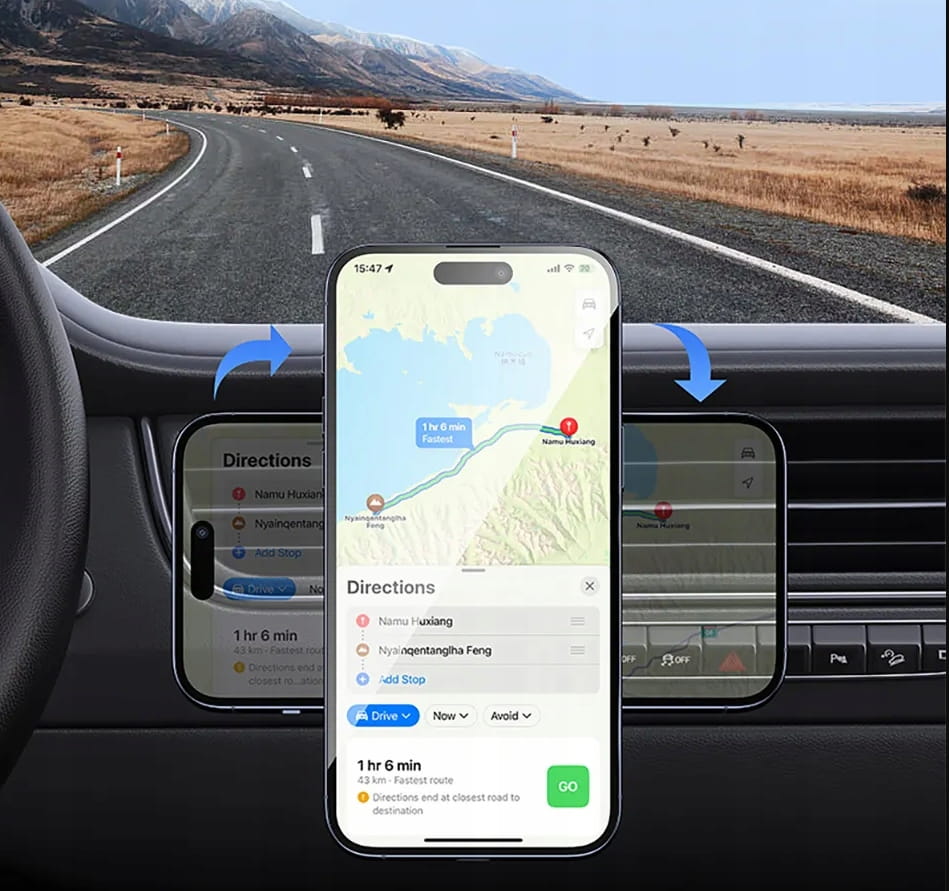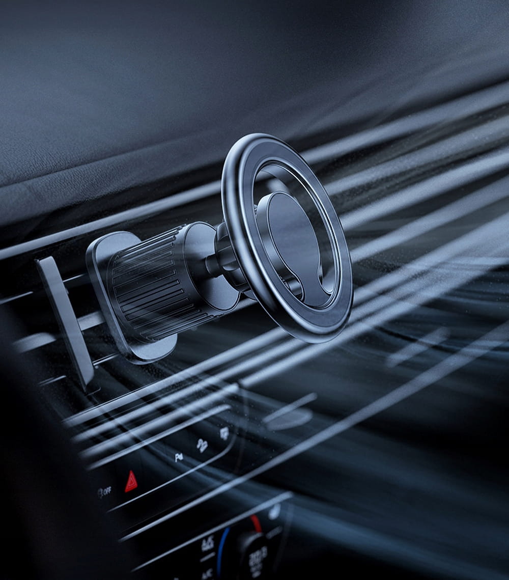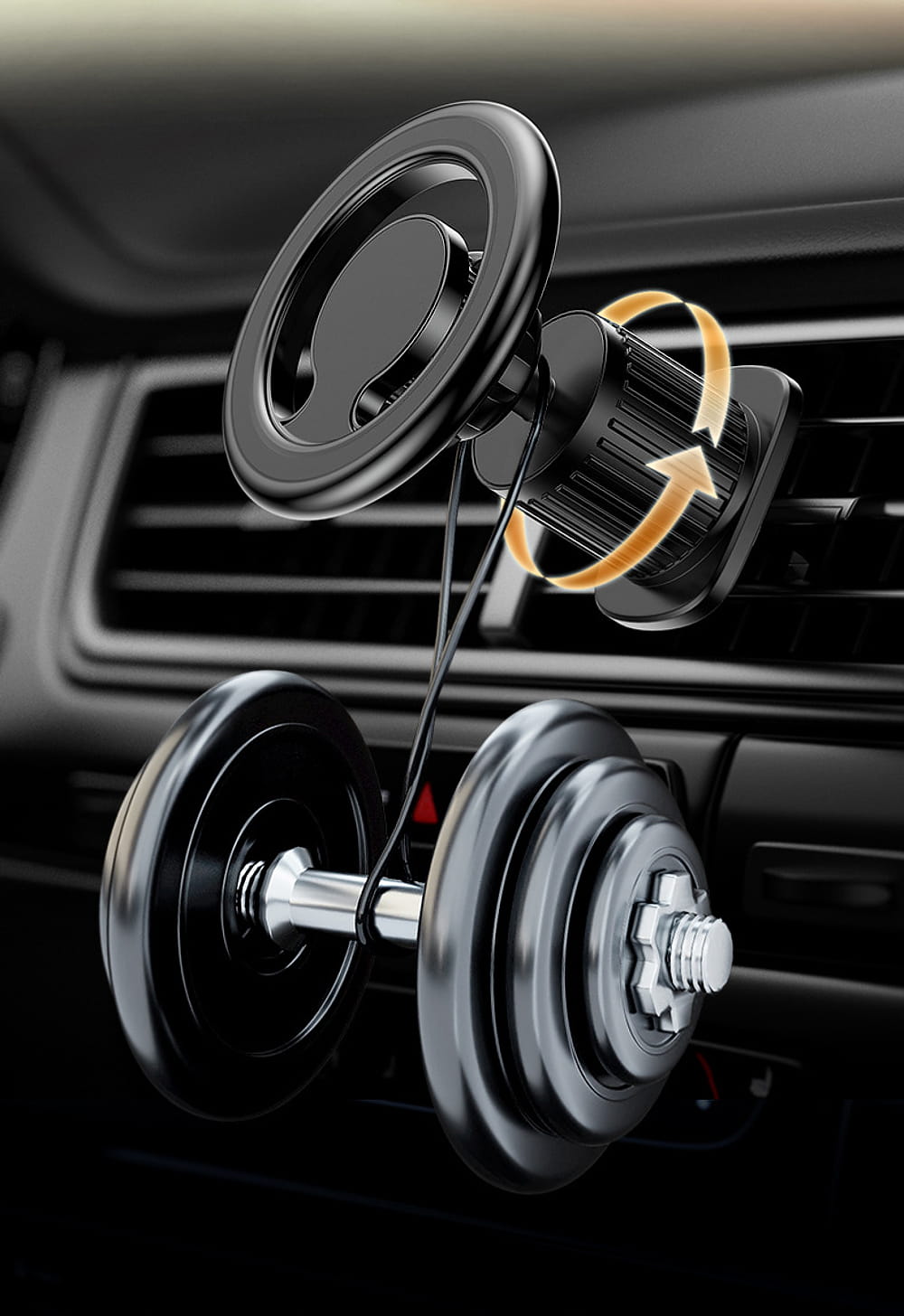 Mocne magnetyczne trzymanie: Uchwyt jest wyposażony w potężne magnesy, które pewnie trzymają iPhone, nawet podczas jazdy po nierównym terenie czy na zakrętach. Dzięki temu twój telefon będzie bezpiecznie zamocowany, niezależnie od warunków na drodze.