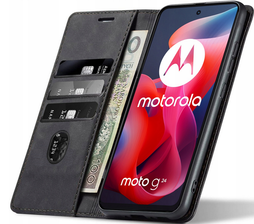 Motorola Moto E14, Etui skórzane z klapką magnetyczne 100% skóra