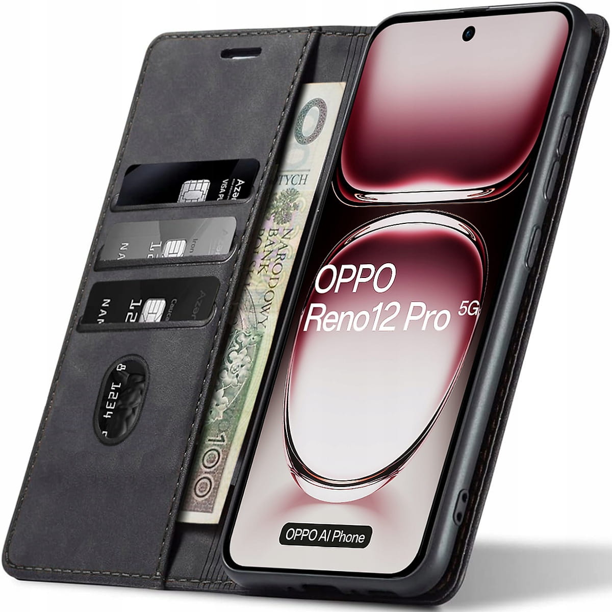Oppo Reno 12 Pro 5G, Etui skórzane z klapką magnetyczne 100% skóra