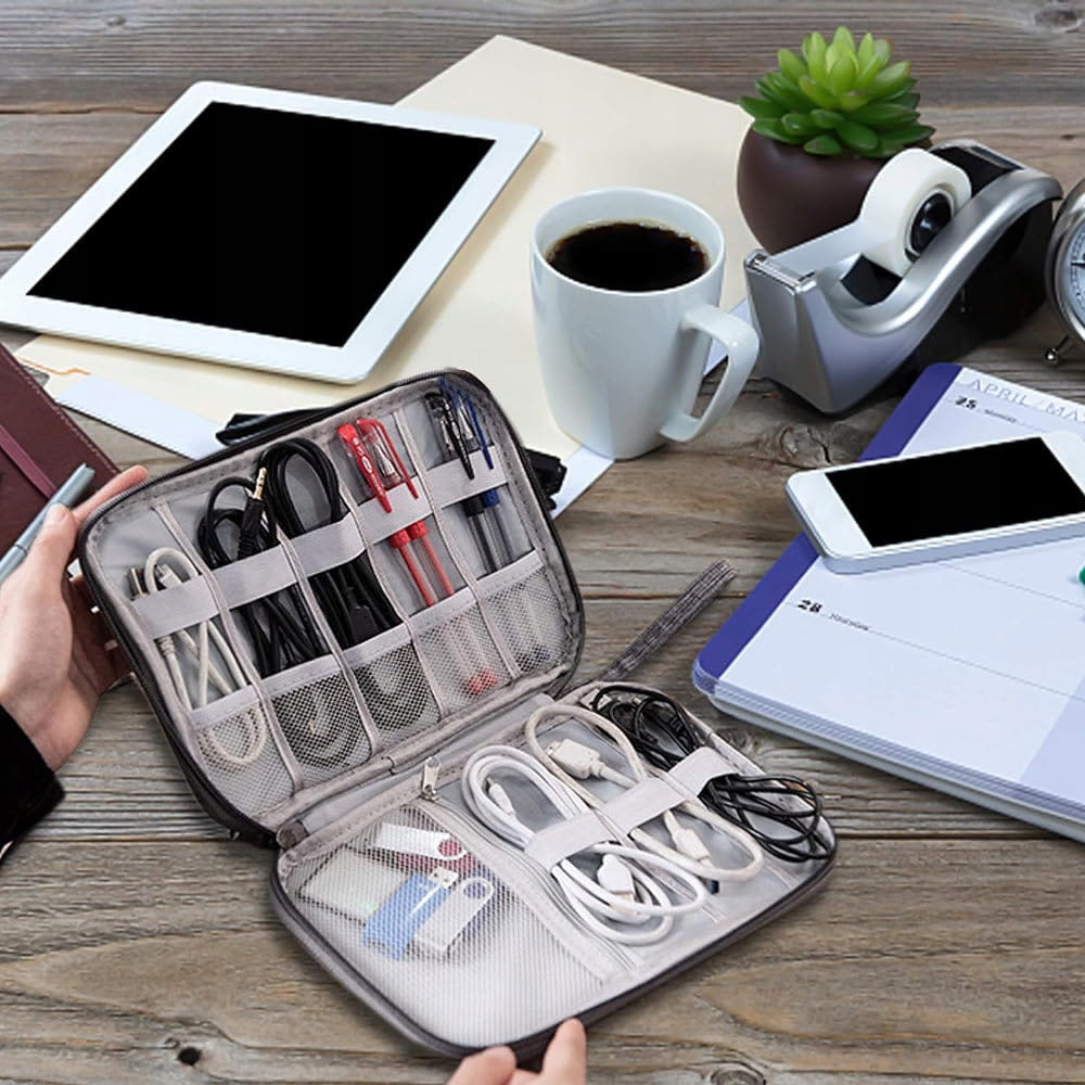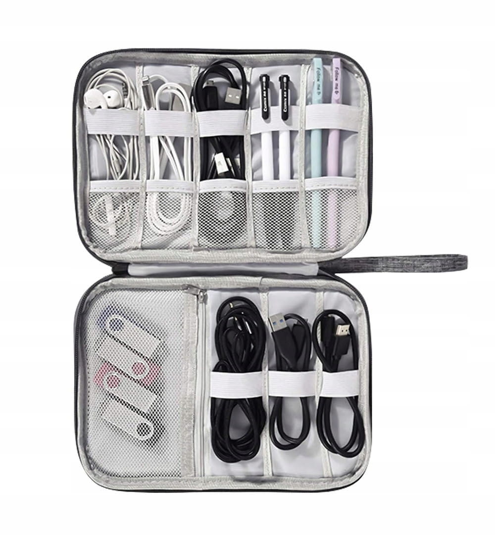 Wielofunkcyjny design: etui posiada wiele kieszeni, przegródek i elastycznych pasków, które pozwalają na uporządkowanie kabli, ładowarek, adapterów, power banków, słuchawek i innych akcesoriów elektronicznych.