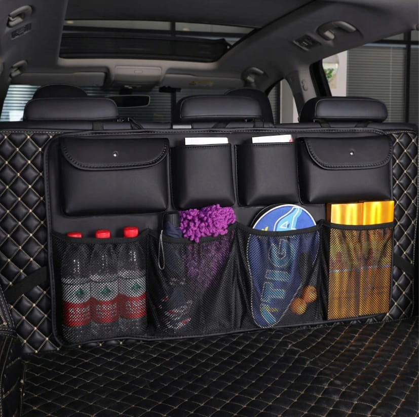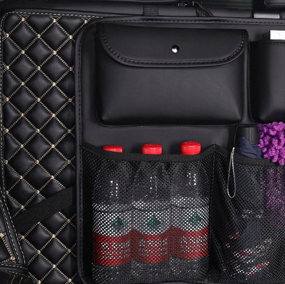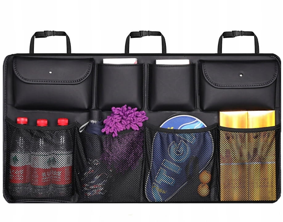 Organizer do bagażnika samochodowego montowany na oparciach w bagażniku samochodu, dzięki któremu zadbasz o porządek w swoim aucie. Organizer wyposażony jest w 8 dużych kieszeni w tym dwie zamykane na nap. Bez trudu pomieści wszystkie podręczne przedmioty, które będą miały swoje stałe miejsce. Zadbaj także o bezpieczeństwo i porządek - przedmioty podczas gwałtownych manewrów nie porozrzucają się po aucie.