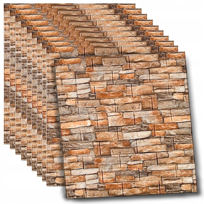 PANELE SAMOPRZYLEPNE TAPETA 3D CEGŁA - KOMPLET 10 SZTUK (5,4m2)