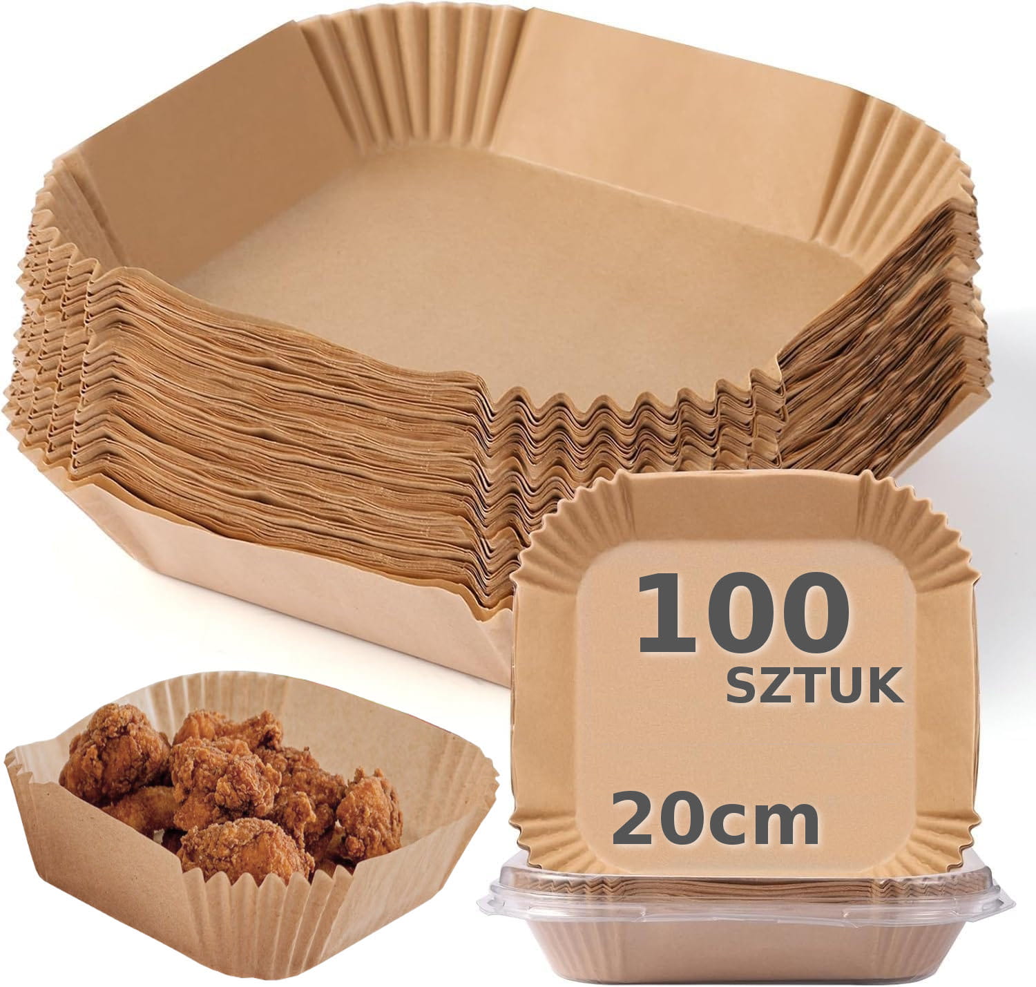 Papier do pieczenia foremki do Air Fryer zestaw 100 szt 20cm wkłady tacki