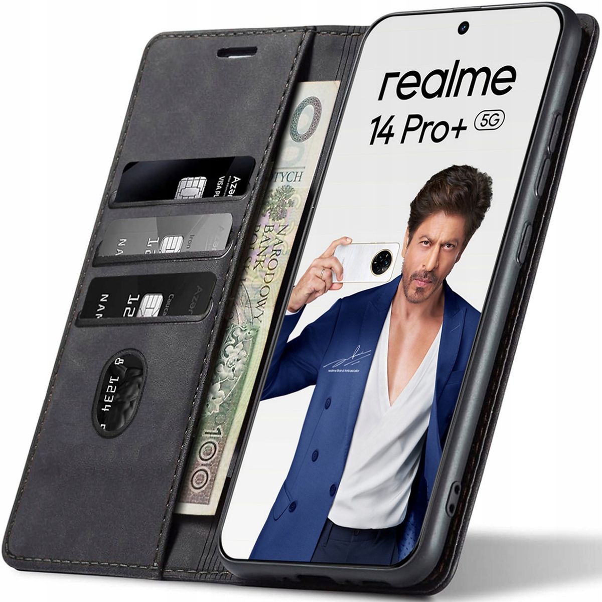Realme 14 Pro + Plus 5G, Etui skórzane z klapką magnetyczne 100% skóra
