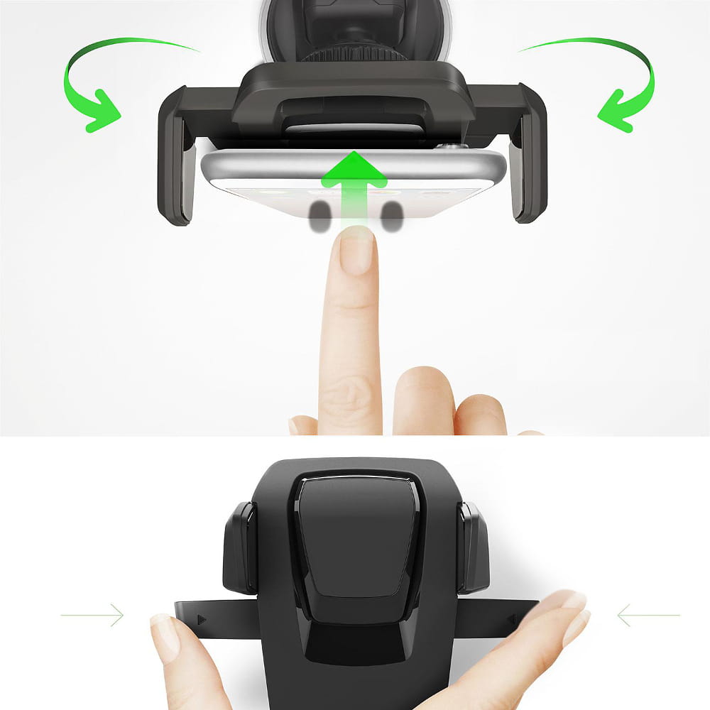 Uchwyt Grawitacyjny - zaciska się automatycznie pod wpływem wagi włożonego do niego urządzenia, idealnie dopasowując się do niego i gwarantując jego stabilne zamocowanie.