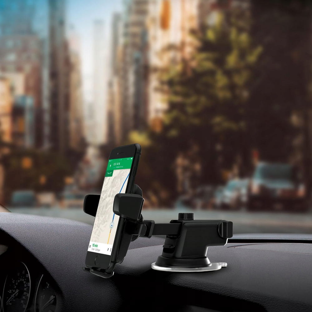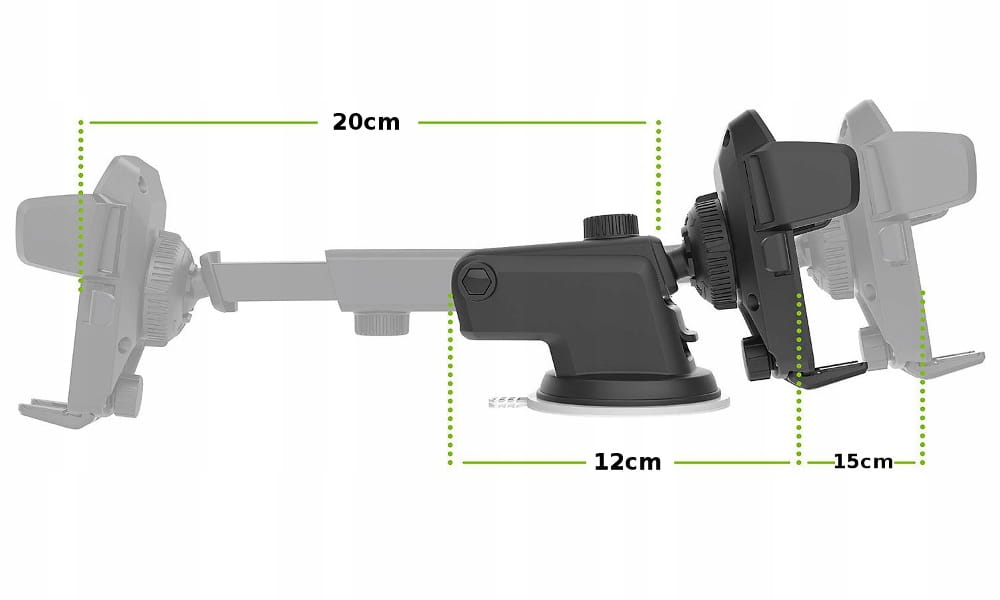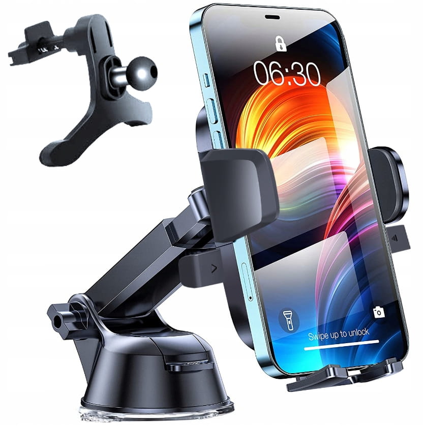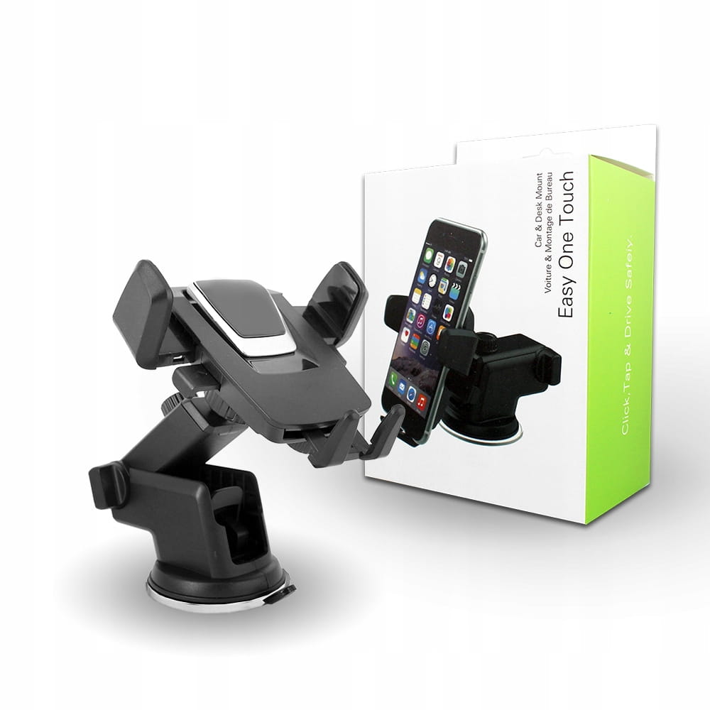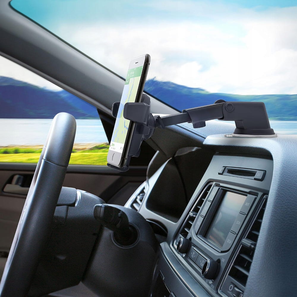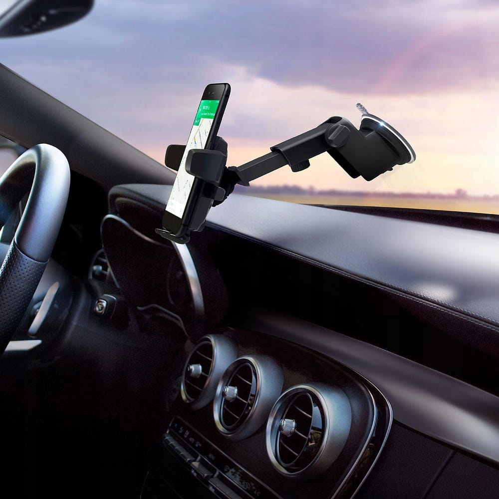 Uchwyt pozwala na zamocowanie telefonu / smartfona na desce rozdzielczej lub szybie samochodu przy pomocy przyssawki.