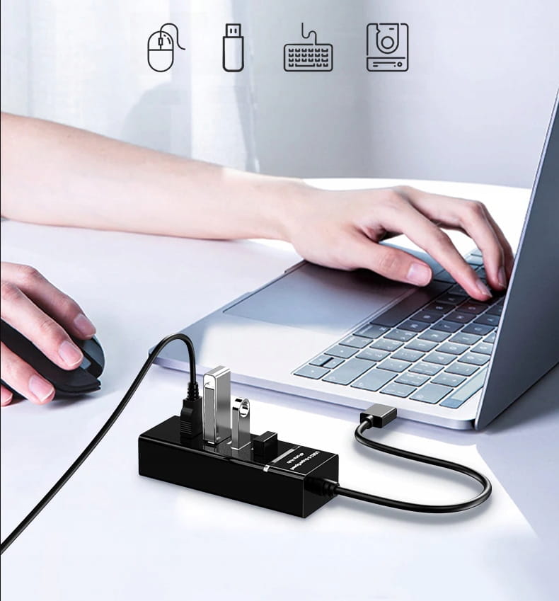 AŻ 4 PORTY HI-SPEED – adapter USB dodatkowe porty do podpięcia nowych urządzeń do USB. Będzie to doskonałe rozwiązanie, gdy ilość wolnych portów w komputerze czy tablecie jest niewystarczająca i konieczne są dodatkowe wejścia.