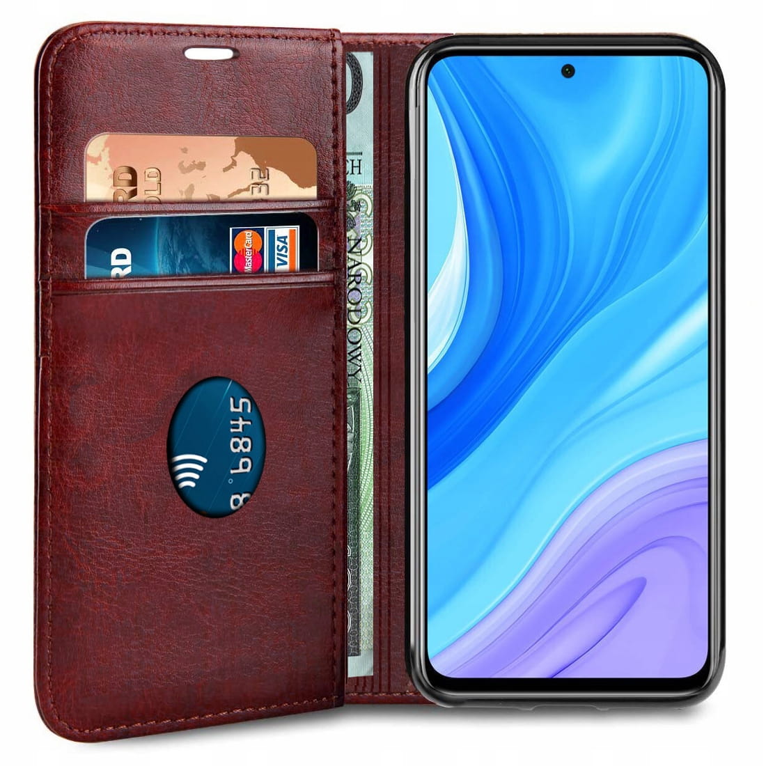 Elegancki skórzany futerał zapinany na magnes. Telefon mocowany jest do wewnętrznego szkieletu. Futerał został wykonany z dobrego jakościowo materiału. Jest starannie wykonany, a wzmocnione przeszycia gwarantują jego trwałość. W jego wnętrzu znajduje się dodatkowa kieszeń na kartę kredytową lub banknoty. Zapinanie na magnes chroni telefon przed wysunięciem, a także przed zarysowaniami i drobnymi uszkodzeniami.