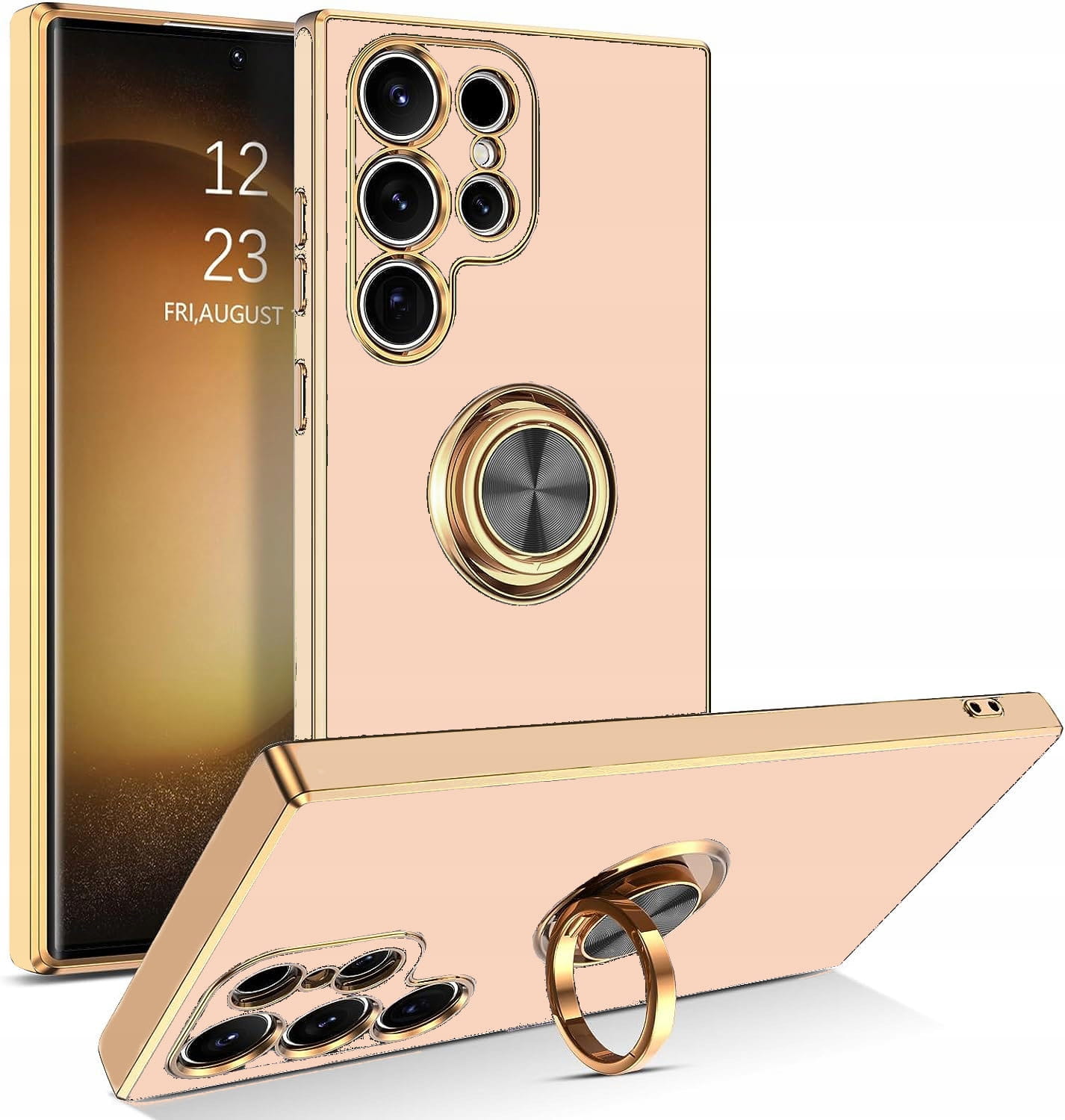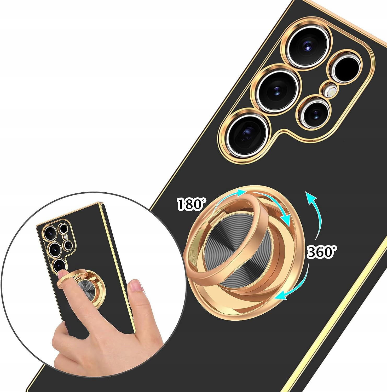 Etui PREMIUM SILICONE RING zapewnia idealną ochronę oraz modny wygląd smartfona.Wysokiej jakości materiał odporny jest na łamanie, pękanie i odkształcenia.Podwyższone ranty zapewniają lepszą ochronę ekranu, a osłona aparatu dodatkowo zabezpieczająca soczewki.Złote ramki etui podkreślają oryginalny wygląd telefonu.Etui jest bardzo lekkie, a przy tym łatwe w montażu i demontażu, wykonane z elastycznego miłego w dotyku tworzywa.