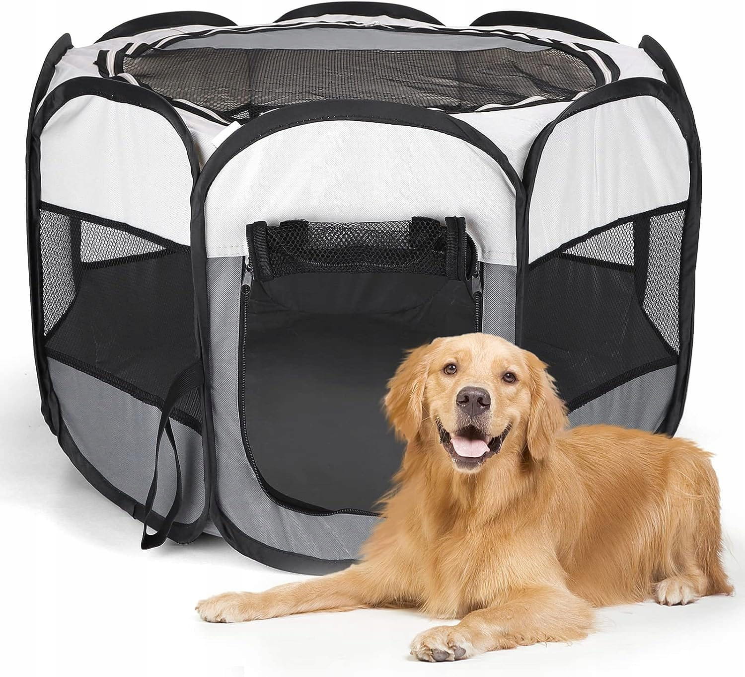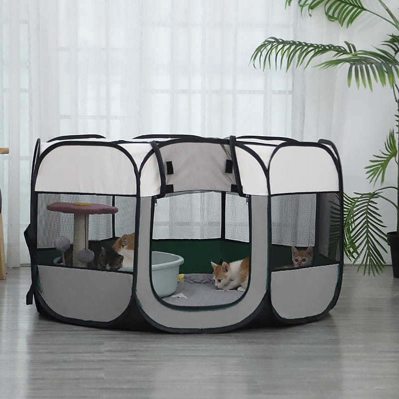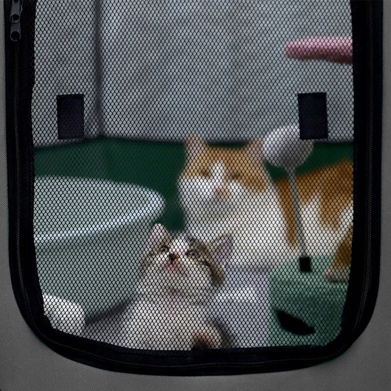 Segmentowy składany kojec dla zwierząt do idealna alternatywa dla nieporęcznych i ciężkich klatek metalowych. Wykonany z odpornych materiałów świetnie nada się jako klatka zarówno dla kotów czy psów. Posiada wejście boczne, jest też otwierany od góry,. Zapinany na zamki błyskawiczne, które uniemożliwiają zwierzakom ucieczkę. Odpowiedni nawet dla kociąt i szczeniąt.