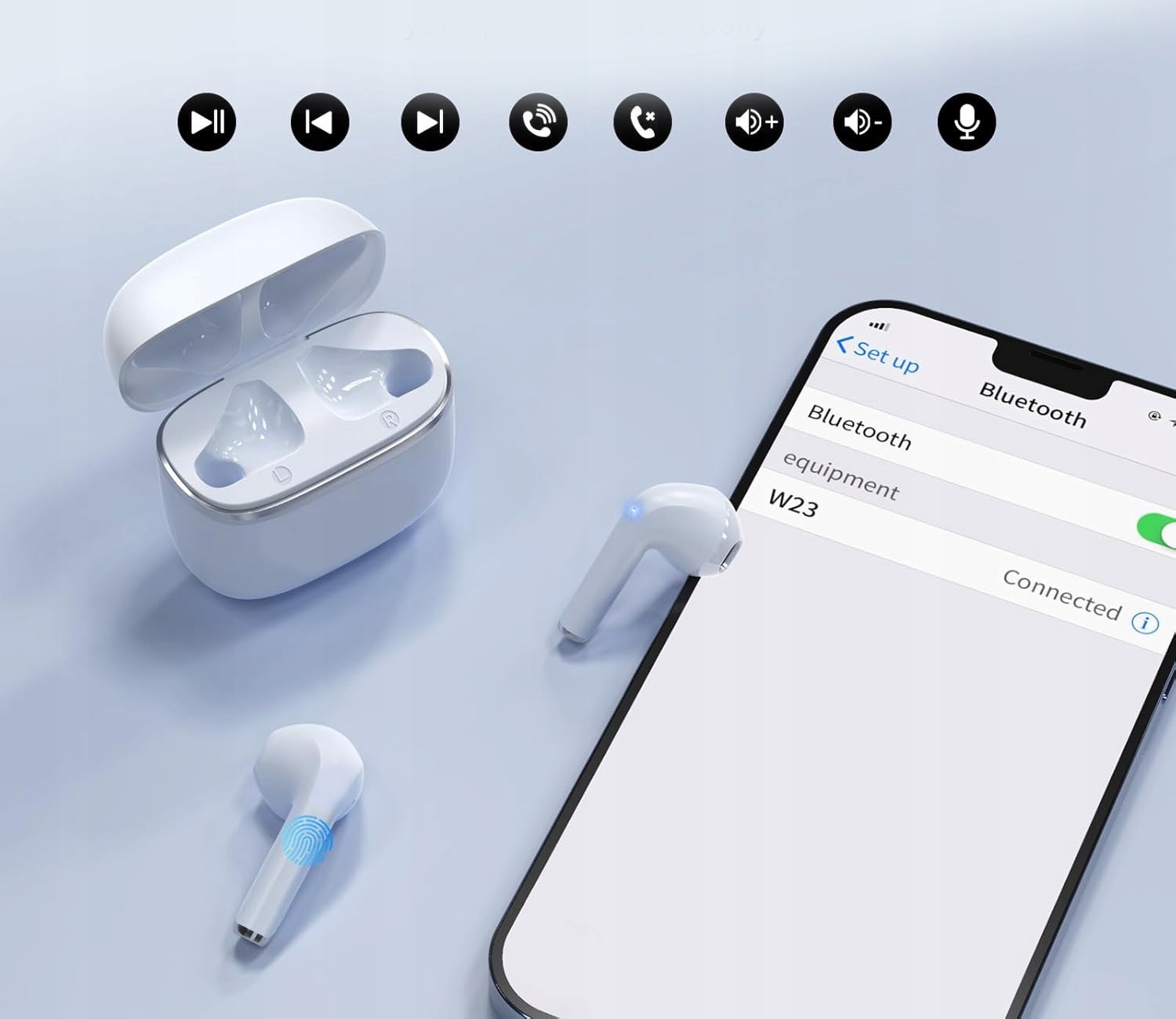 - zmiana języka - przy rozłączeniu słuchawek od telefonu dotknij szybko 6 razy lewą słuchawkę