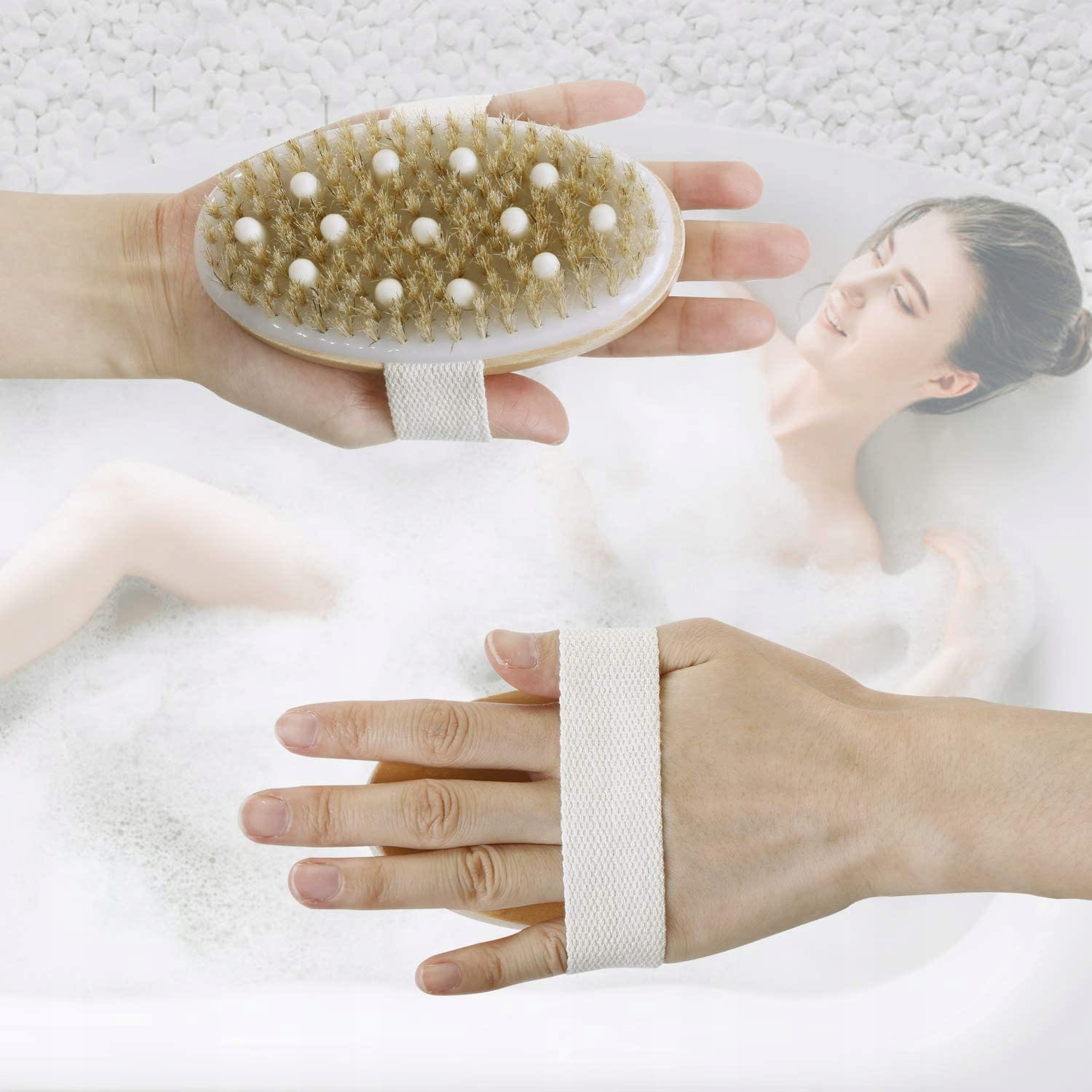 ◉ Skuteczny peeling: ta naturalna szczotka do ciała z miękkim włosiem może skutecznie złuszczać martwy naskórek, wygładzić cellulit i sprawić, że skóra staje się bardziej miękka i gładsza. Pomaga wyeliminować zmęczenie, pozwala cieszyć się szorowaniem ciała podczas kąpieli i prysznica.