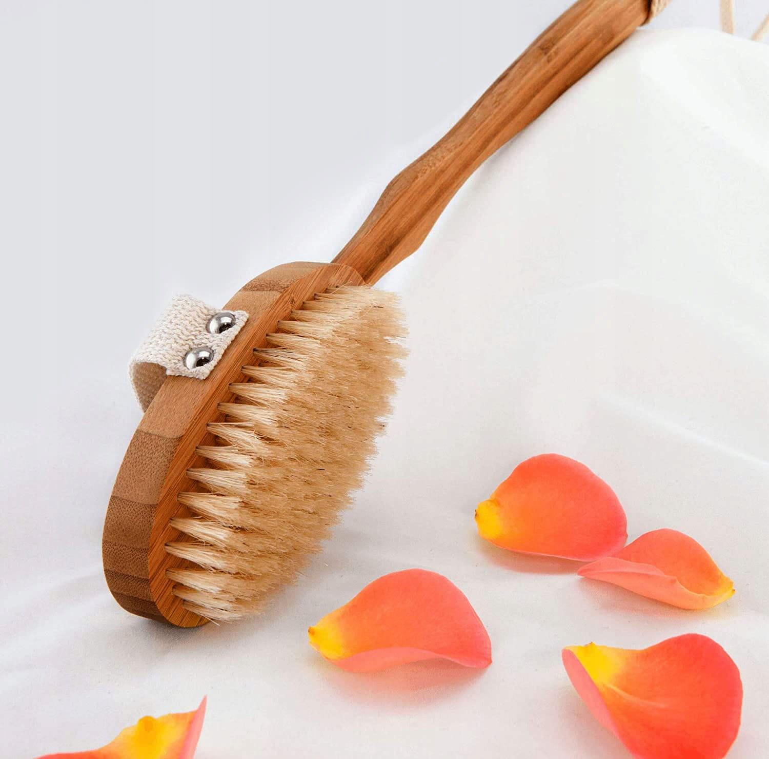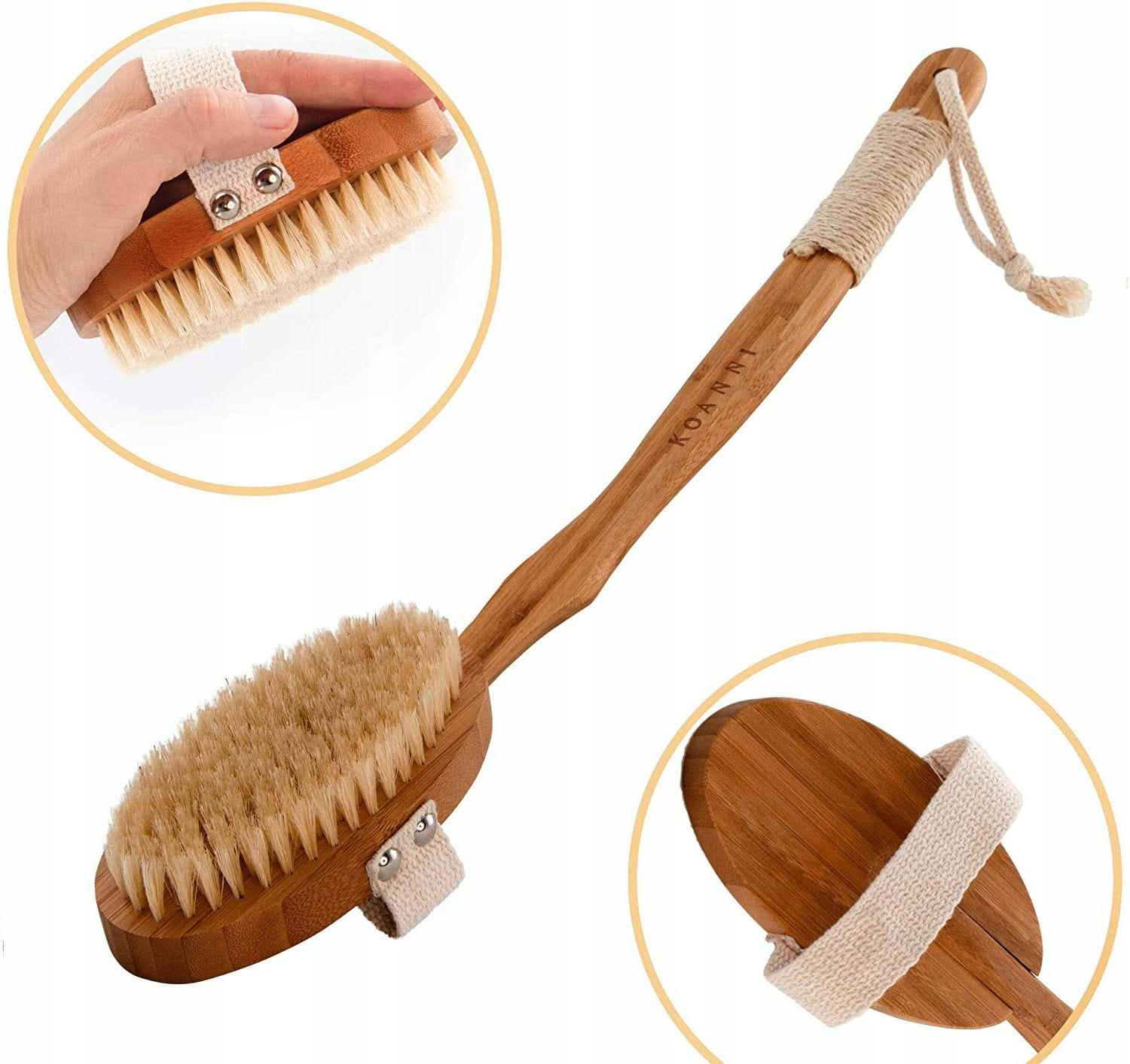 ◉ Skuteczny peeling: ta naturalna szczotka do ciała z miękkim włosiem może skutecznie złuszczać martwy naskórek, wygładzić cellulit i sprawić, że skóra staje się bardziej miękka i gładsza. Pomaga wyeliminować zmęczenie, pozwala cieszyć się szorowaniem ciała podczas kąpieli i prysznica.