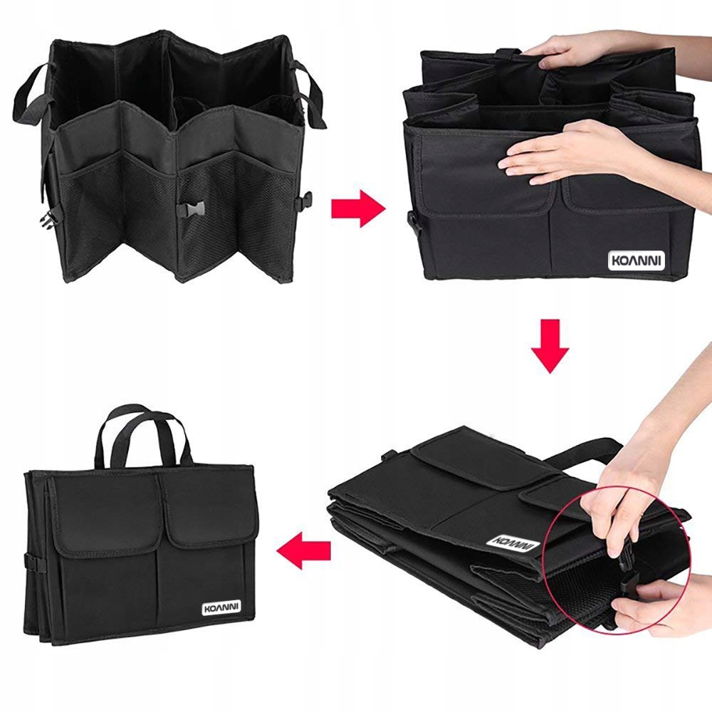 Organizer doskonale sprawdzi się w każdym bagażniku. Wykonany z wytrzymałego poliestru, jest odporny na codzienne użytkowanie. Po złożeniu zajmuje niewiele miejsca, dzięki czemu można go łatwo przechowywać, gdy nie jest potrzebny.