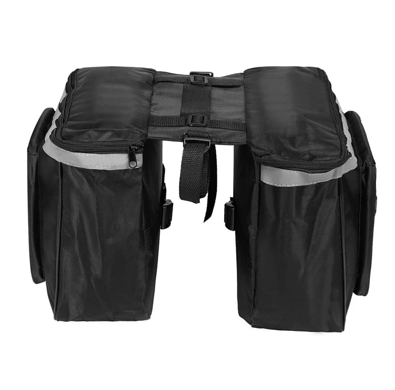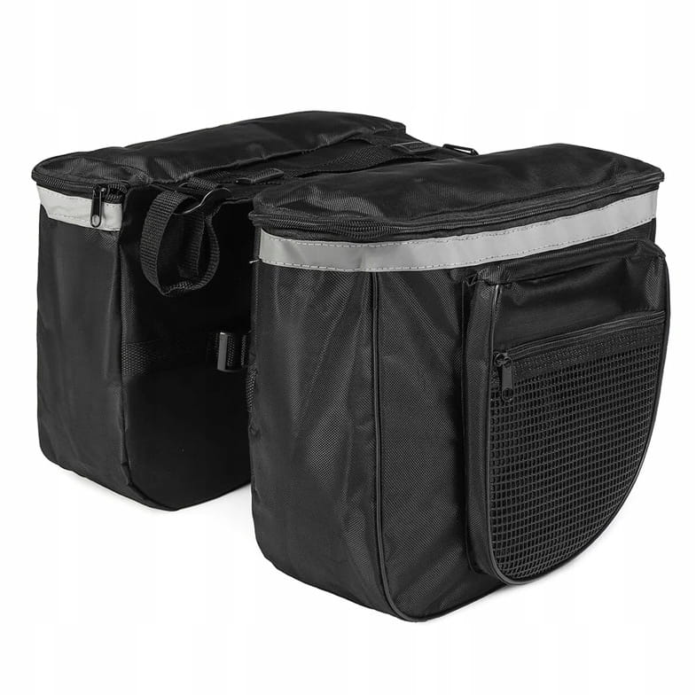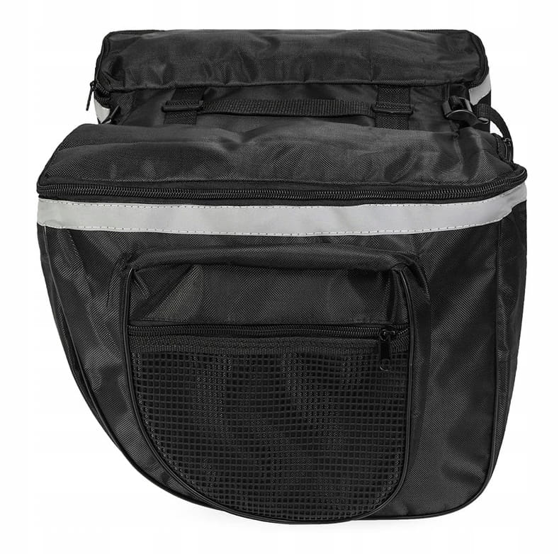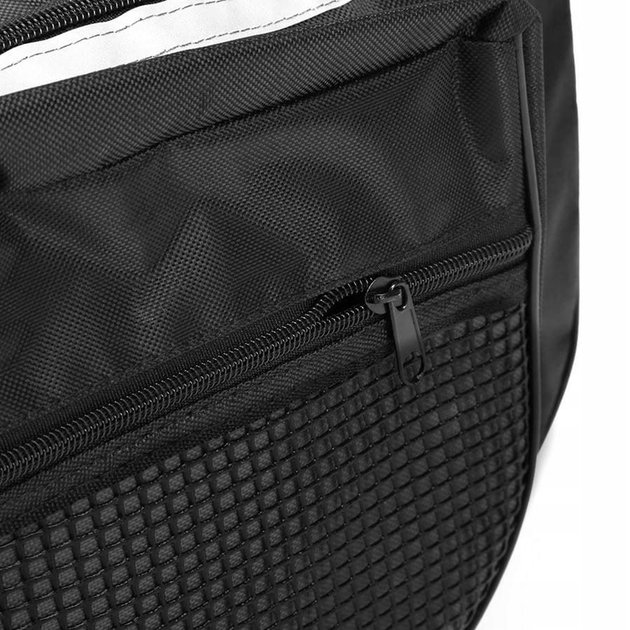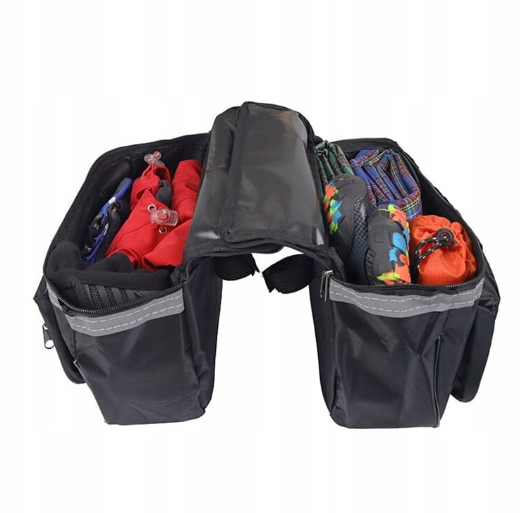 Torba posiada zapinane kieszenie, w których możesz schować naprawdę dużo rzeczy, np. bluzę, wodę, portfel, telefon i wiele innych produktów, które przydadzą się podczas wycieczki rowerowej. Bagażnik jest wykonany z materiału, więc sztywny stelaż nie ogranicza jego pojemności.