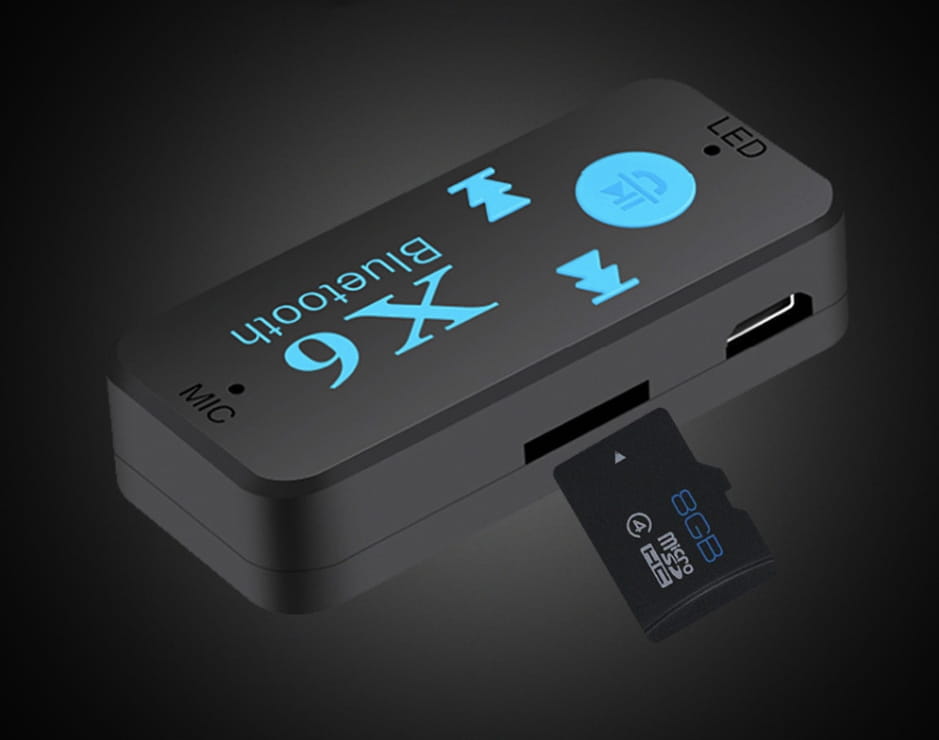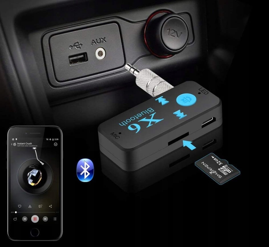 HQ X6 Samochodowy odbiornik muzyczny Bluetooth (zestaw głośnomówiący) to zaawansowany technologicznie produkt bezprzewodowy, który może odbierać muzykę na telefonie komórkowym lub karcie Micro SD lub nadajniku obsługującym technologię Bluetooth. Ten odbiornik muzyczny może być używany do prawie wszystkich odbiorników audio z wtyczkami wejściowymi, w tym samochodowymi. Możesz odbierać muzykę ze smartfona i MP3 w głośnikach domowych lub w systemie dźwiękowym samochodu. Ciesz się doskonałą muzyką samochodową, rozwiązaniami do połączeń, korzystaj ze smartfonów za pośrednictwem połączenia audio w samochodzie i słuchaj muzyki. Delikatnie naciśnij, aby zadzwonić, cieszyć się muzyką zapisaną w telefonie lub nawet odtwarzać radio internetowe. Produkt z wbudowanym mikrofonem eliminującym echa, tylko przycisk może być łatwo umieszczony w muzyce i przełączany między nimi.